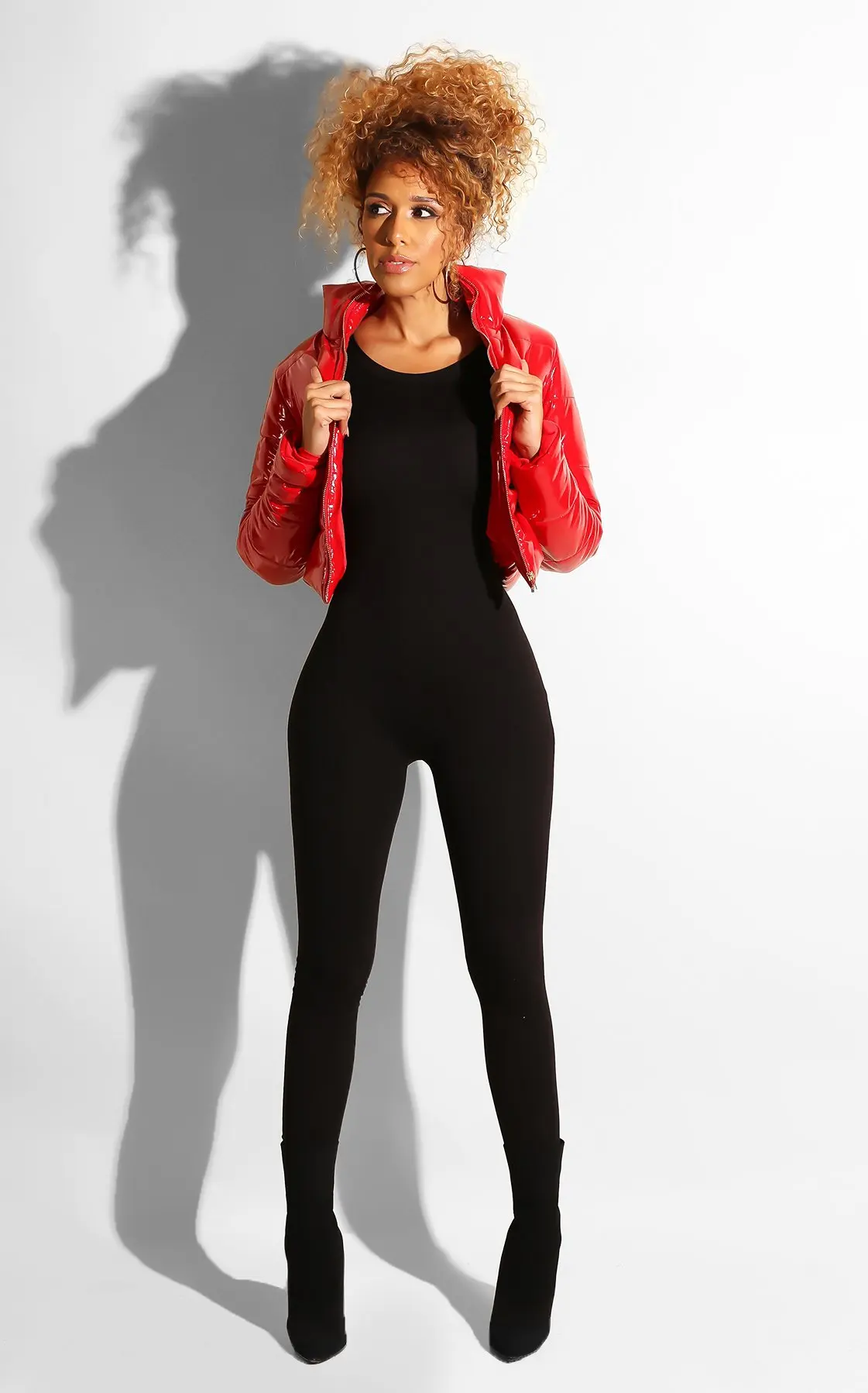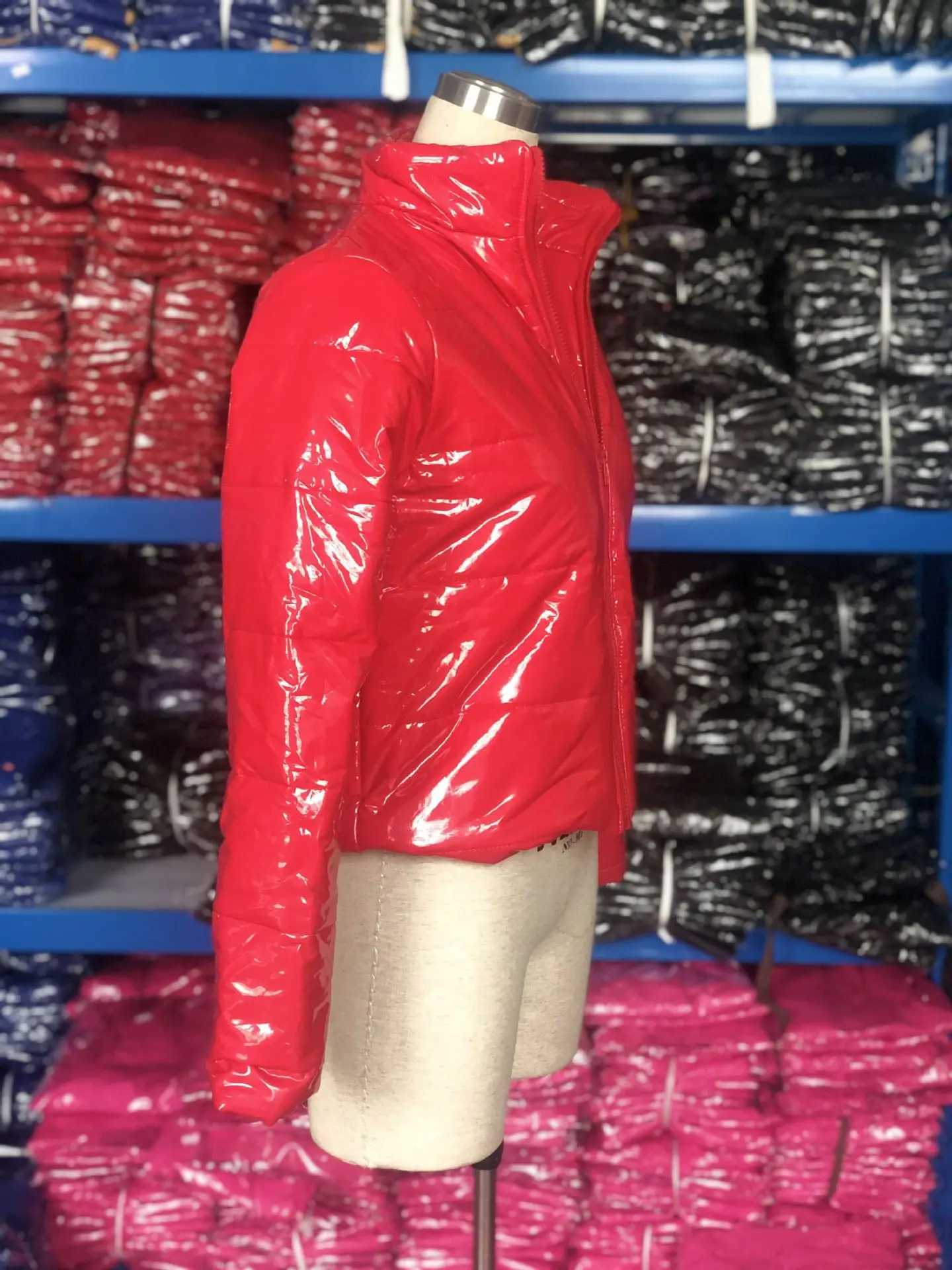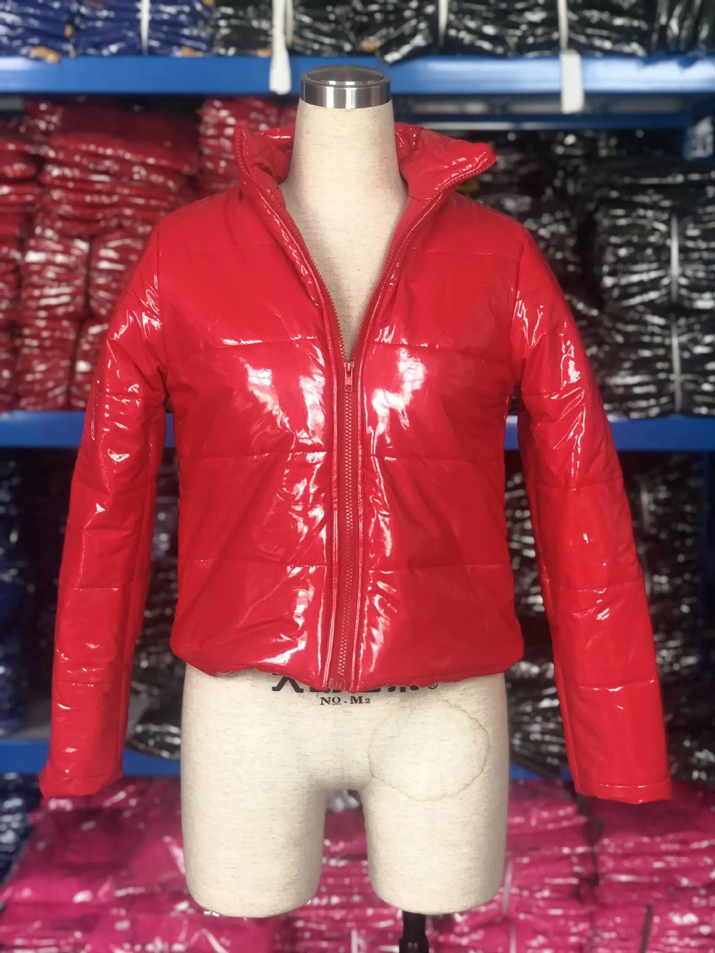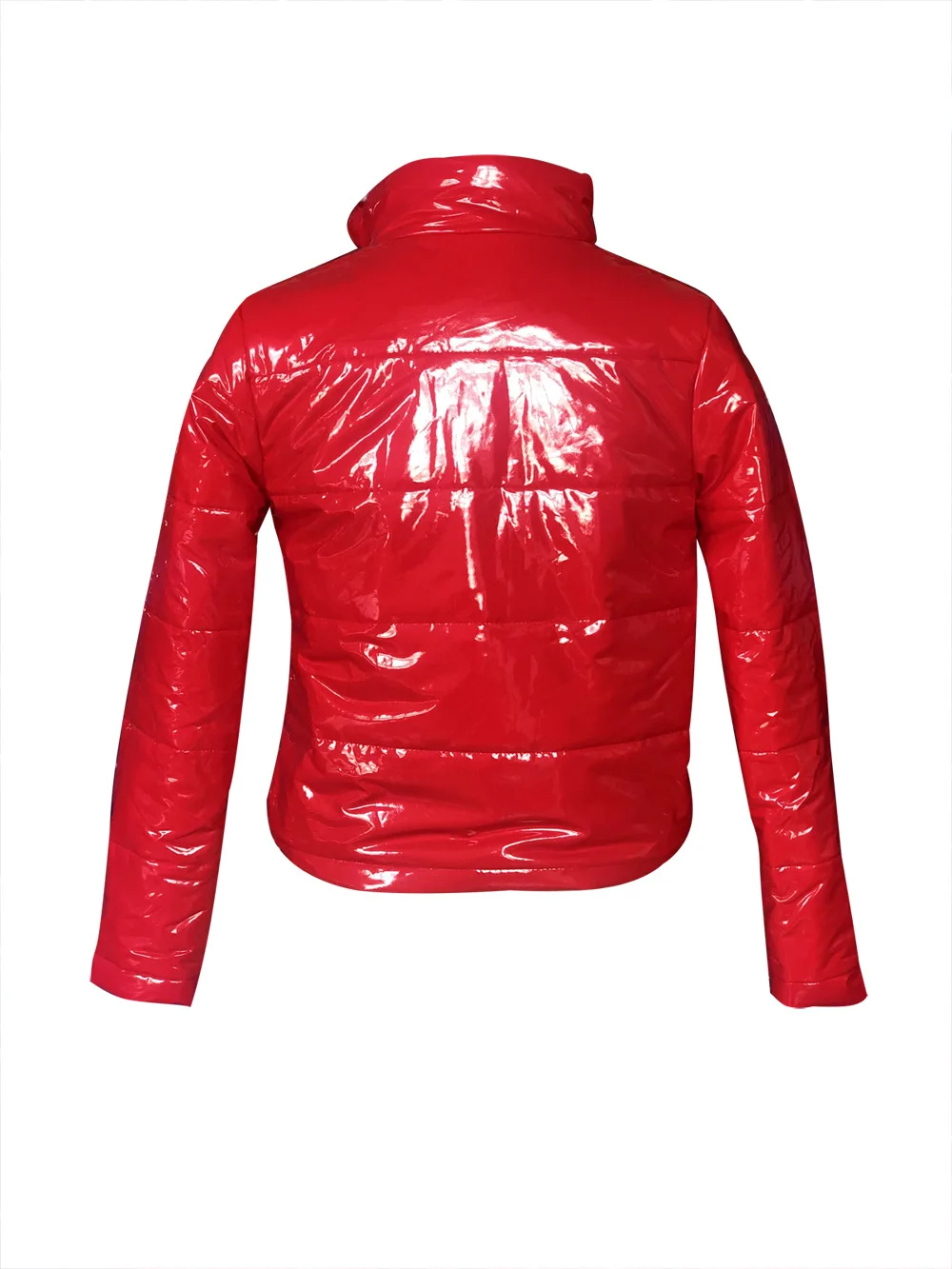 Модное зимнее пузырьковое пальто из лакированной кожи, женская крас...