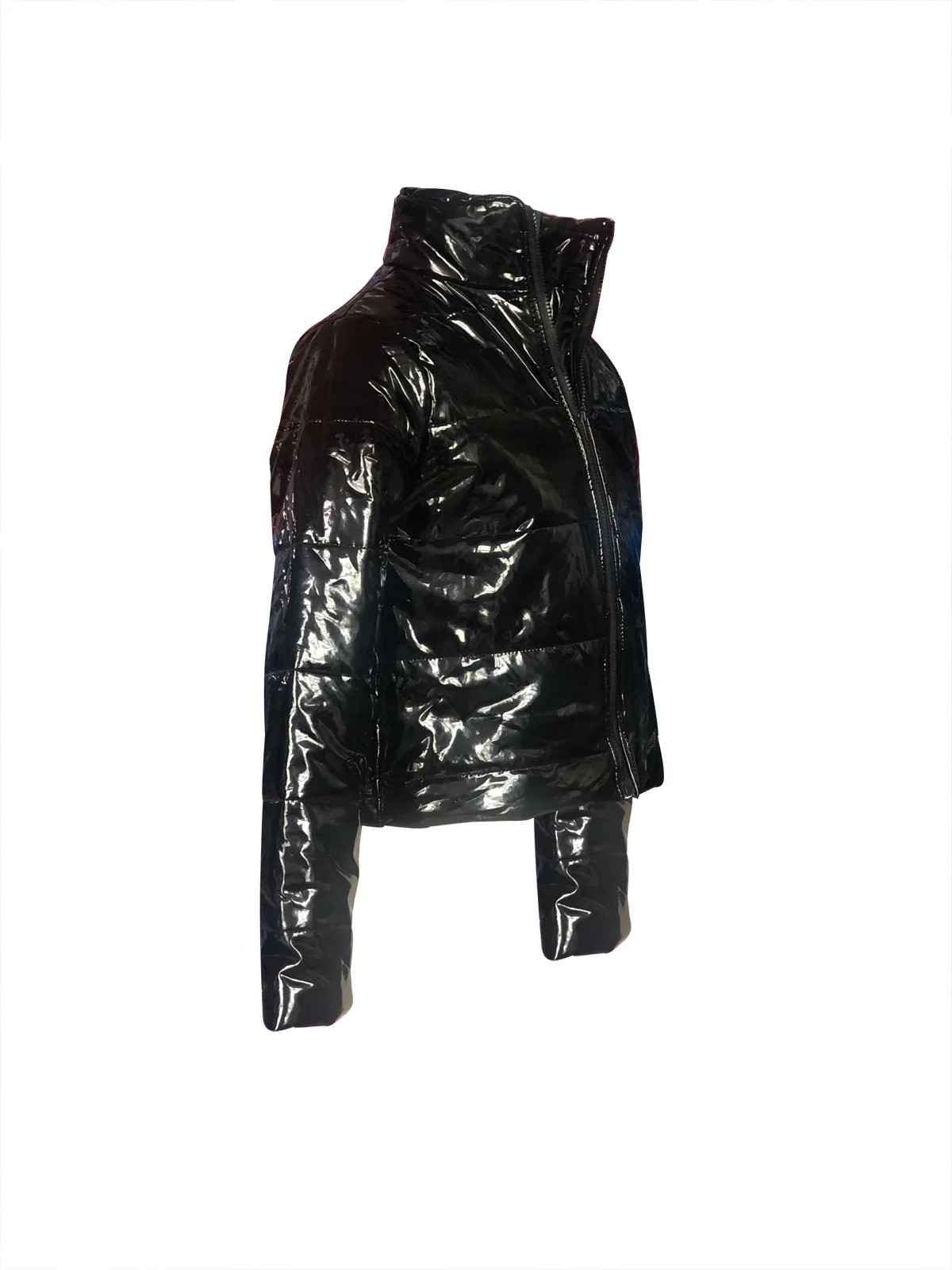Глянцевая зимняя куртка 2019, Женская водолазка, однотонная облегаю...