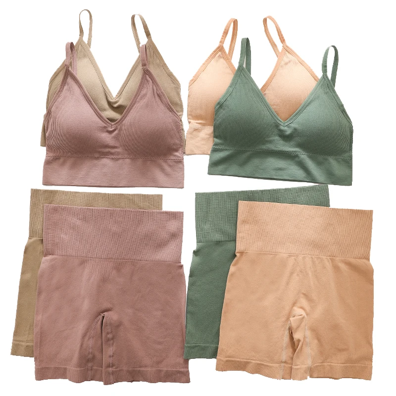 Спортивный женский комплект из бюстгальтера и трусов, комплект Бесшовного нижнего белья с высокой талией, удобный топ в рубчик, бюстгальтер для фитнеса, спортивная одежда, укороченный топ