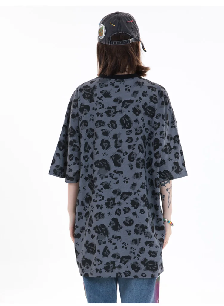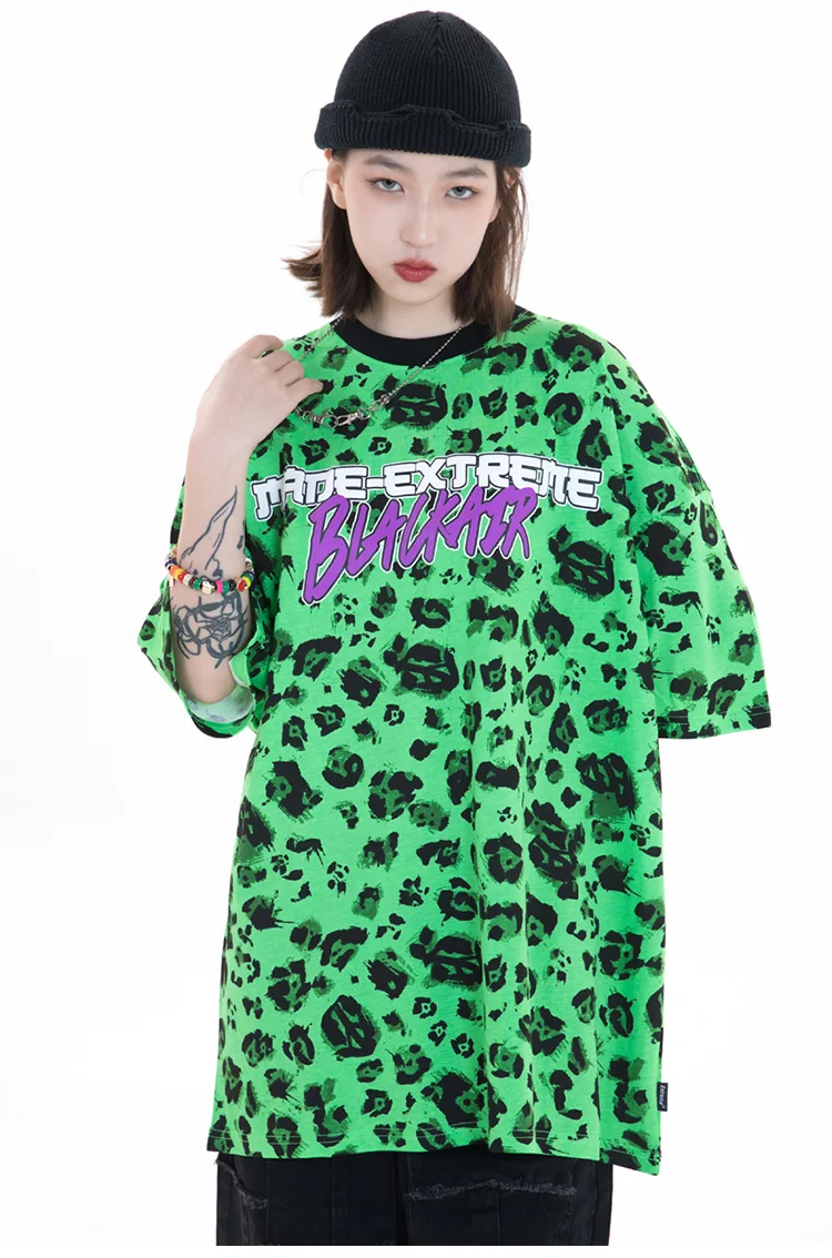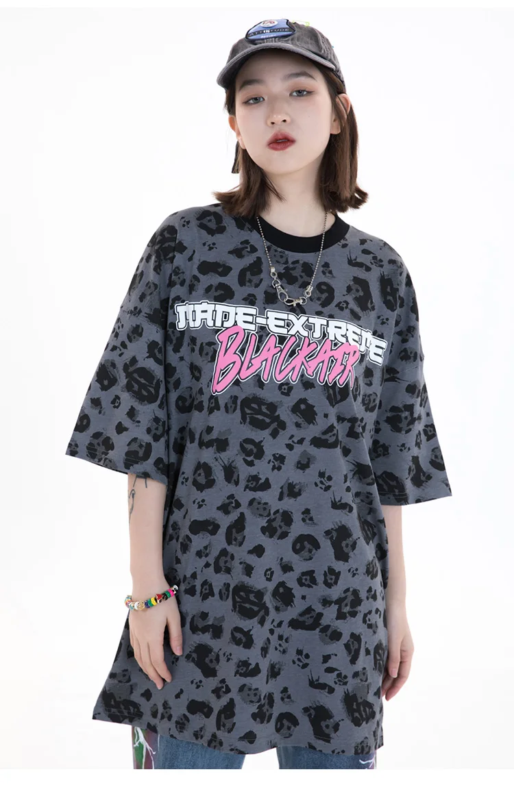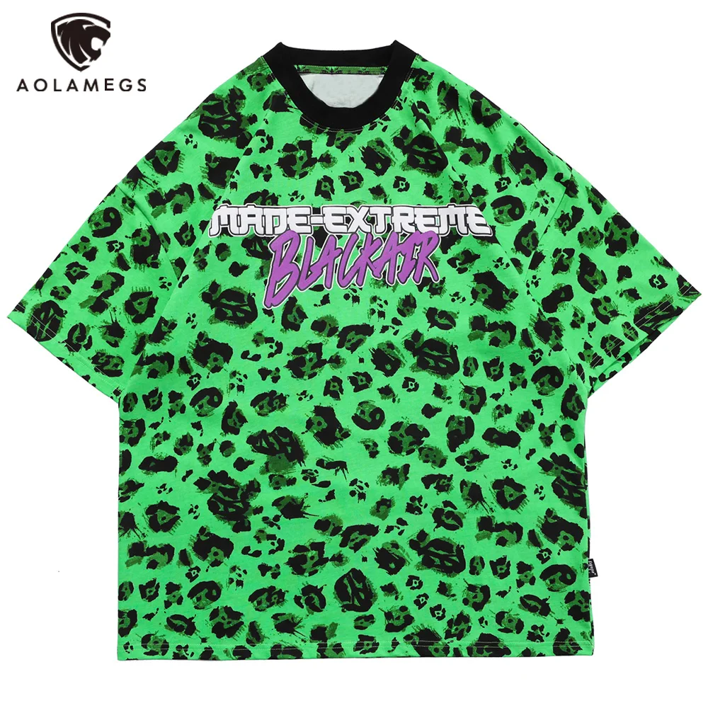 Aolamegs Футболка Мужская хип-хоп хит цвет Леопардовый принт парные футболки рок хипстер крутой High Street оверсайз уличная летняя