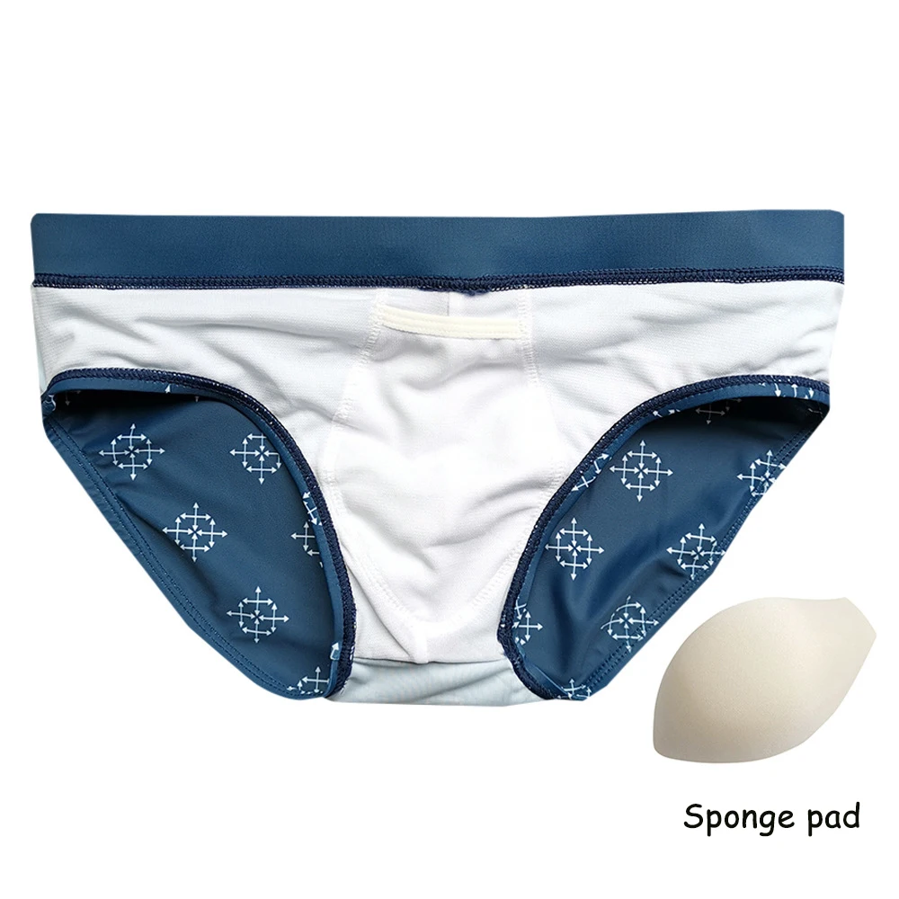 Мужские плавки с геометрическим принтом и губчатой подкладкой, сини...