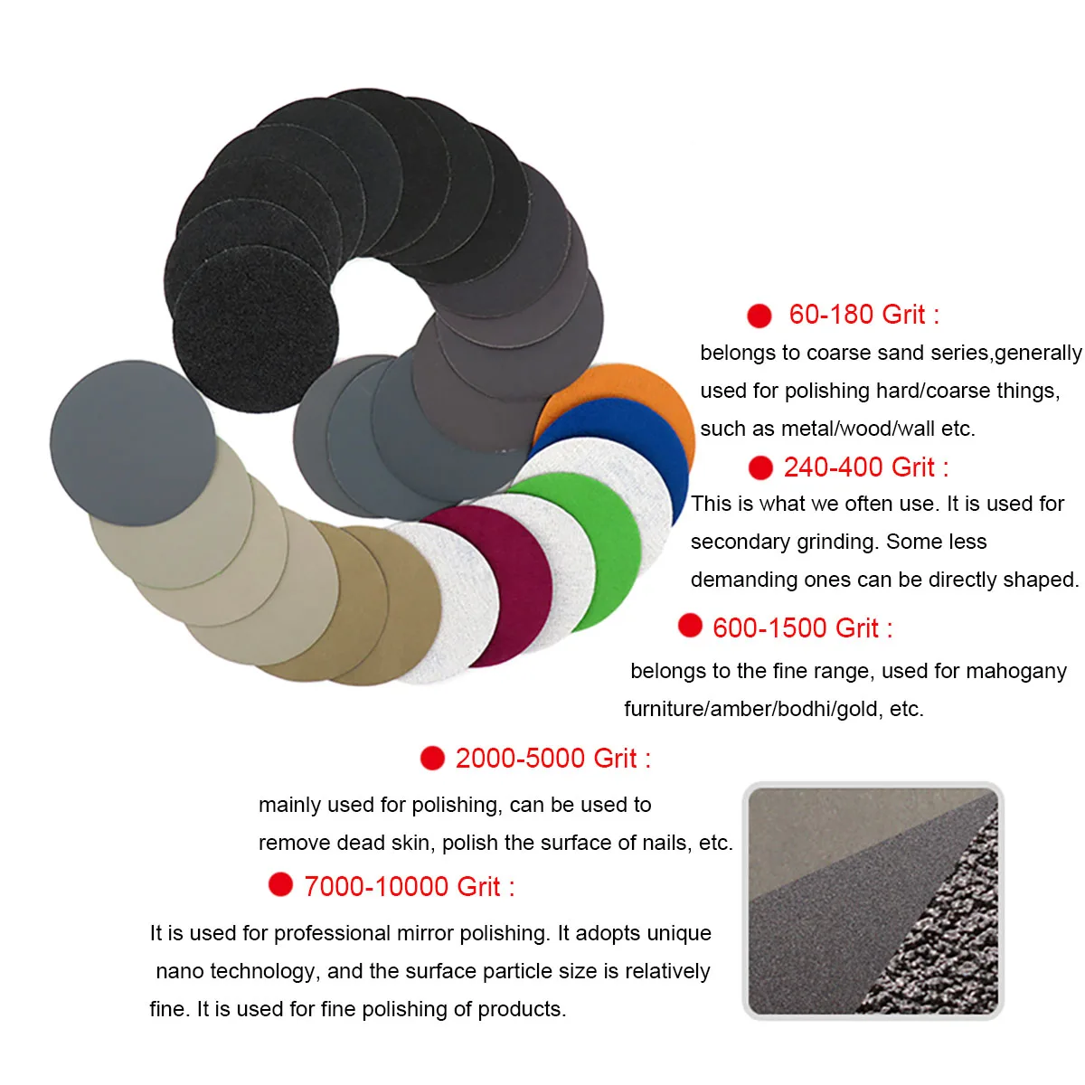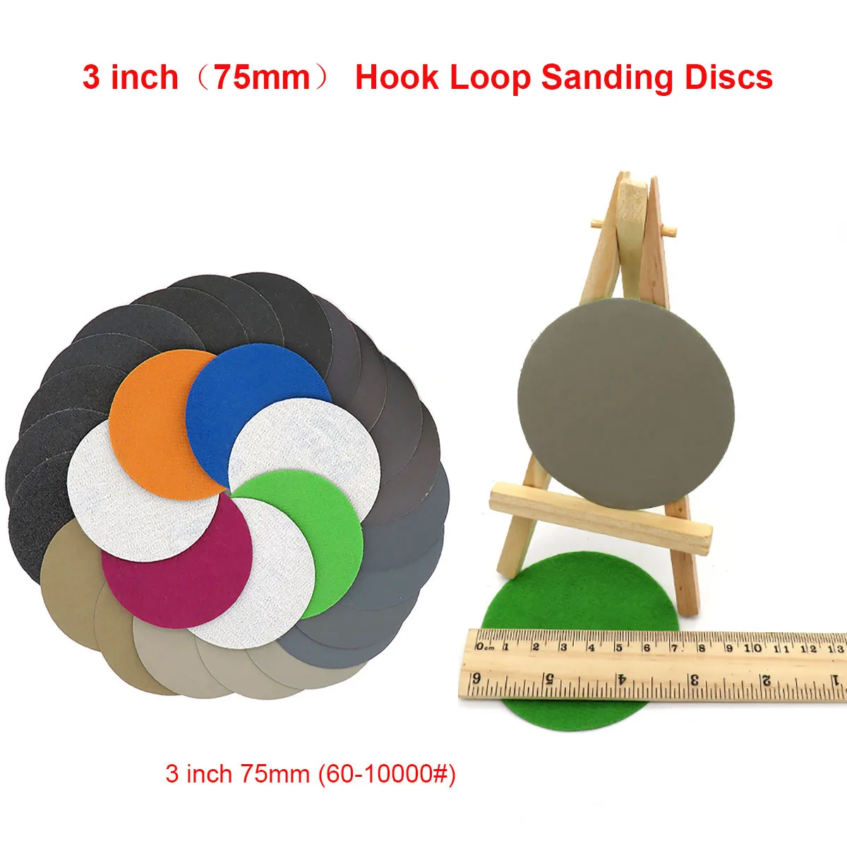 Круглая водостойкая наждачная бумага, 30 шт., 75 мм, с петлей-липучками, 3 дюйма, карбид кремния, абразивный материал, абразивность от 60 до 10000, влажноесухое зерно