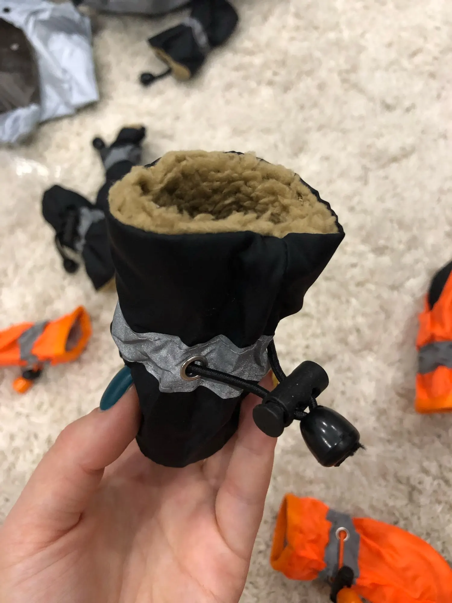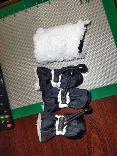 Здравствуйте! хорошие бошмачки, соответствуют описанию, на лапках держаться хорошо, даже когда прыгает по сугробам, правда один уже потеряли))т.к. ребенок слабо затягивает резиночки, буду заказывать ещё одни, спасибо продавцу, всем рекомендую!