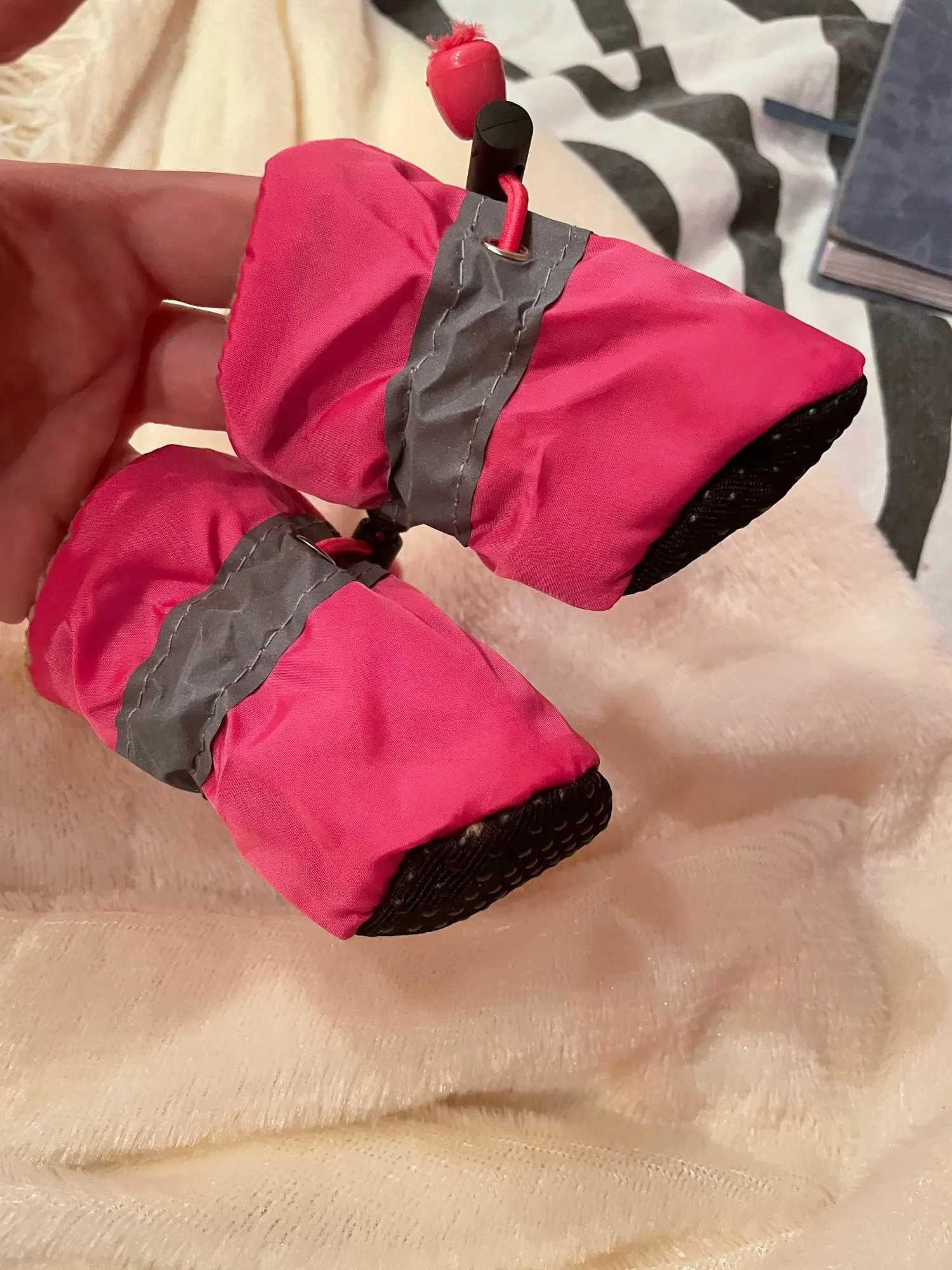 Сапожки понравились. Заказывала синие. На йорка весом 3кг.отлично подошли. Сегодня заказала ещё черные