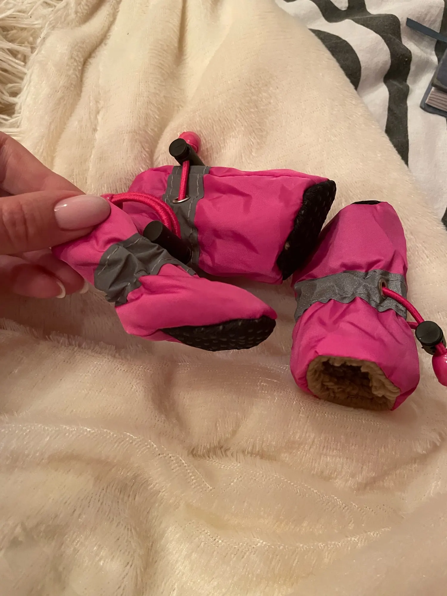 ботиночки отличные, собачка не очень в восторге в них ходить, а так теперь элегантная девочка в розовых топотулях)