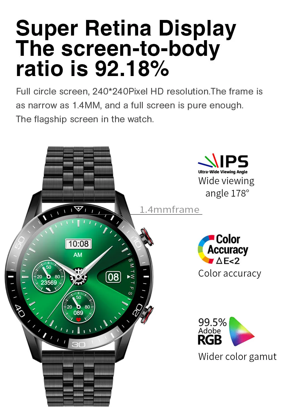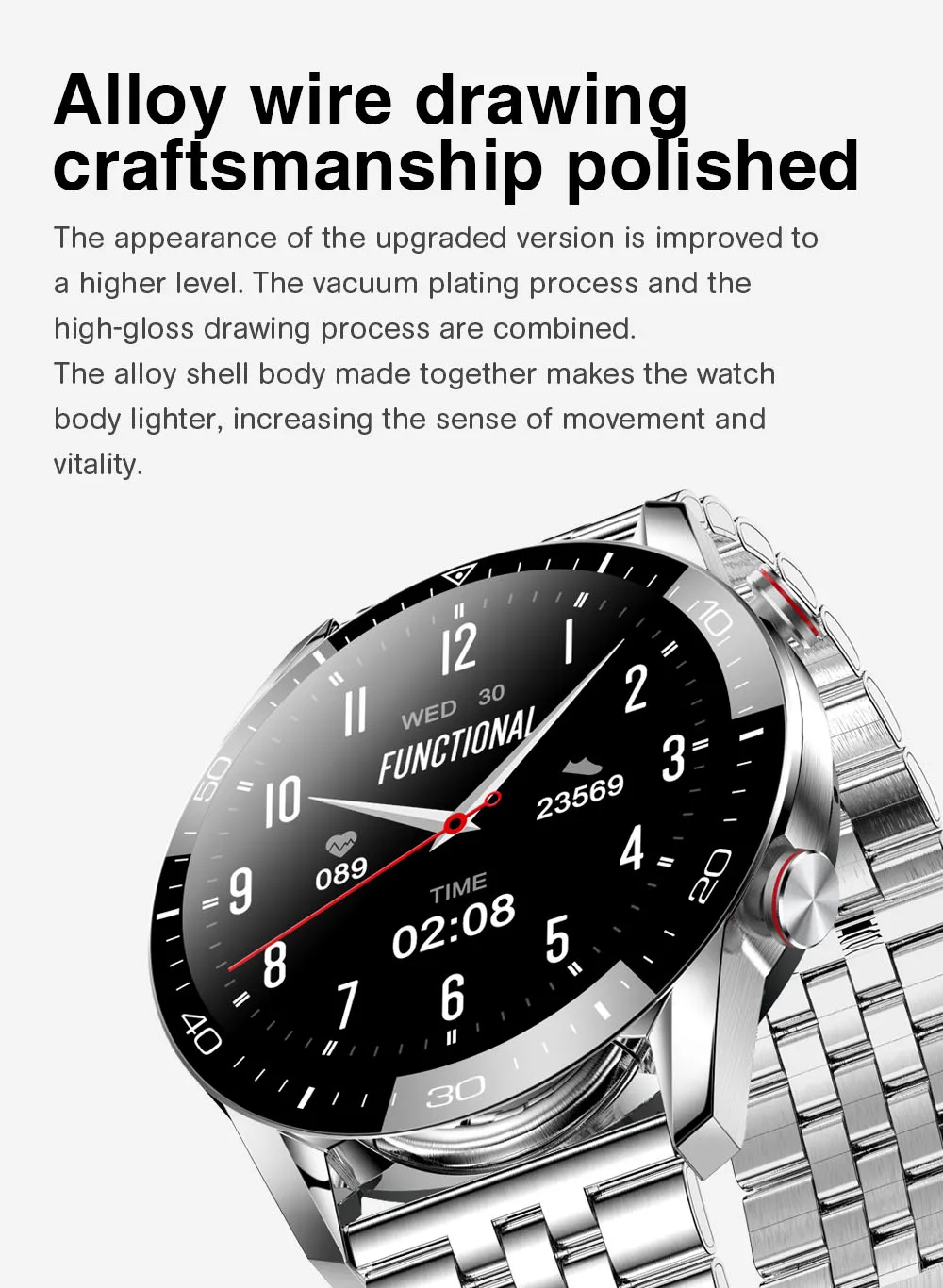 * 6,3-дюймовый круглый экран высокой четкости IPS * IP68 Водонепроницаемый * Сплав с ЧПУ, гальваническое усиленное минеральное стекло с защитой от отпечатков пальцев * Пищевой силиконовый ремешок * Чипсет: Bosch421 * Версия Bluetooth: 4,0 * Пульс/артериальное давление/кислород в крови/ЭКГ * Multip watchface на выбор * Пищевой силиконовый ремешок * Основные функции: пульс, артериальное давление, кислород в крови, шагомер, секундомер, часы, управление музыкой, погода, push-уведомления, push-уведомления по SMS, мониторинг сна, напоминание о малоподвижности, мульти-спортивный режим, напоминание о звонке