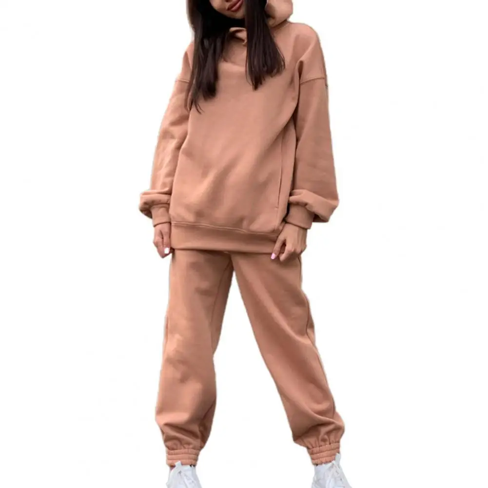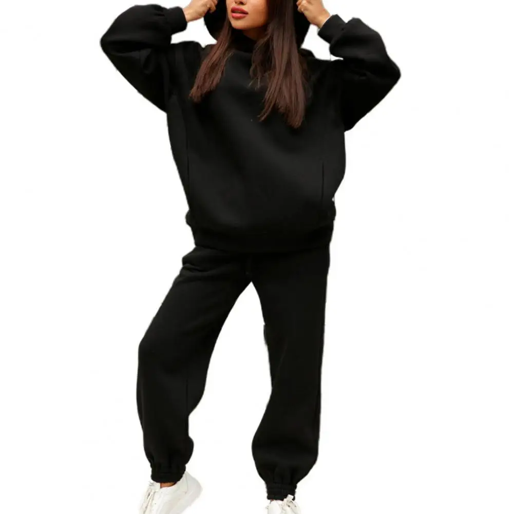 Комплект уличной одежды женский из 2 предметов, джоггеры, свитшот с капюшоном и брюки, флисовый спортивный костюм из двух предметов, Осень-зима