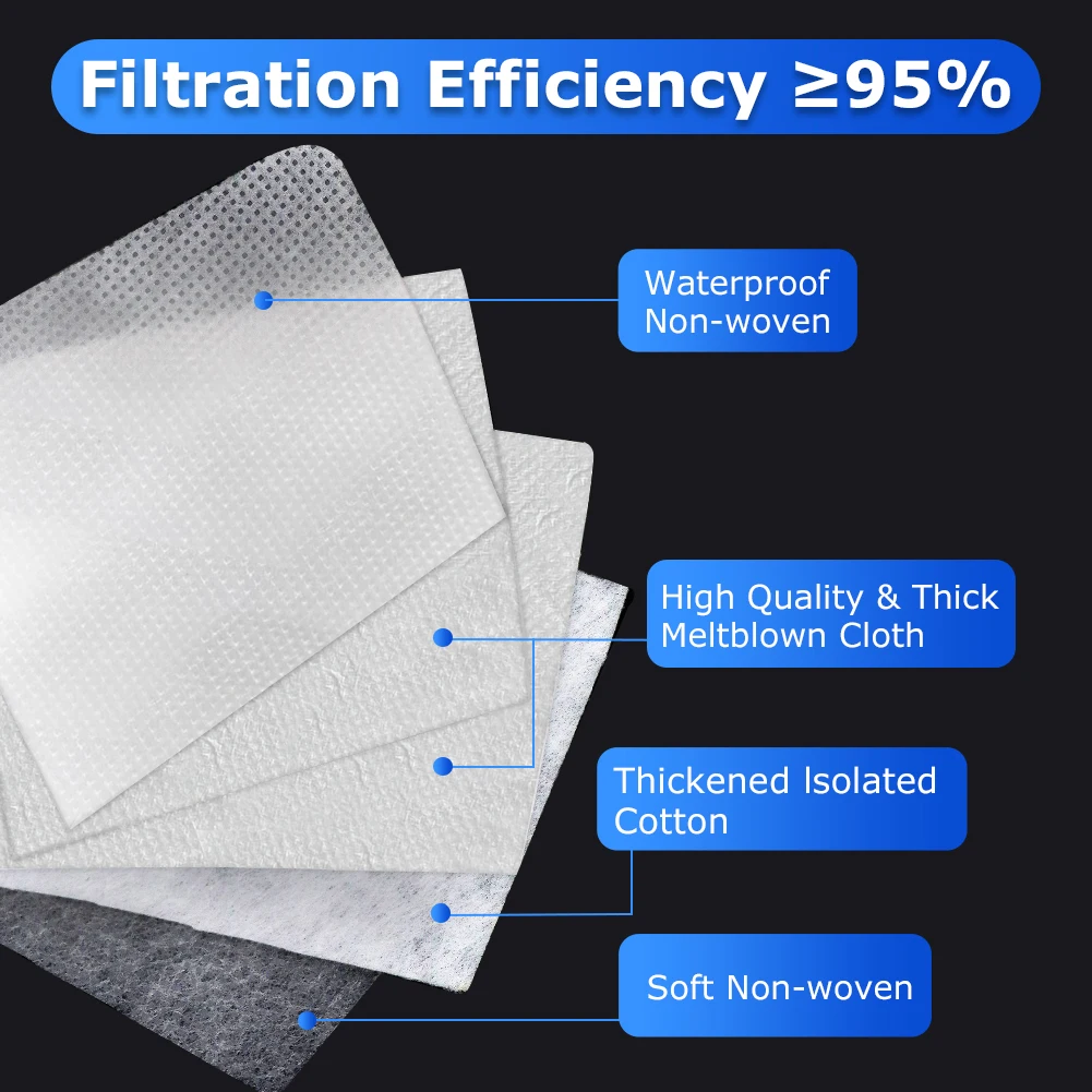 Многоразовая маска Powecom KN95 FFP2 для рта, дышащая защитная маска для лица, 5 слоев, фильтрационный респиратор 95%, Пылезащитная маска
