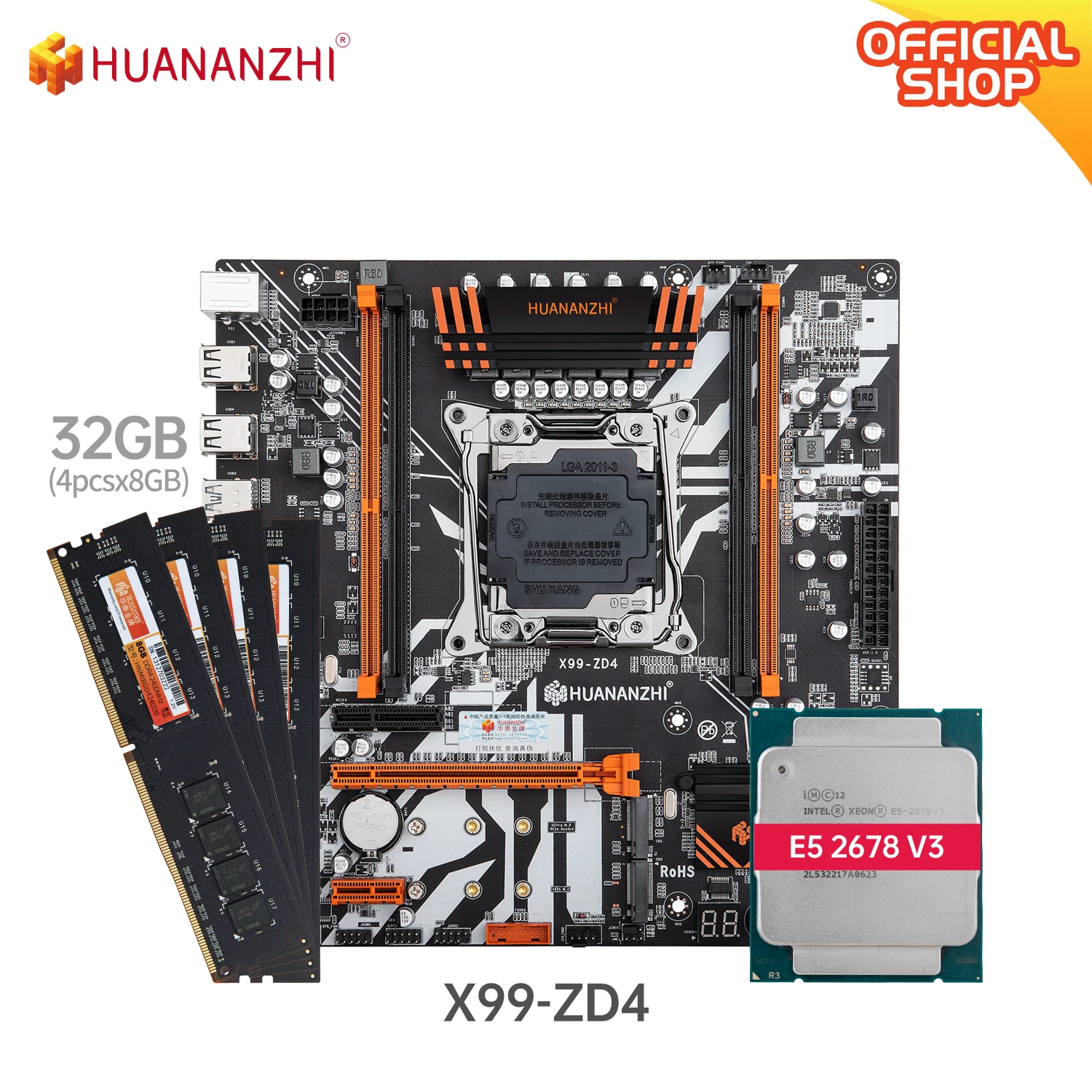 Материнская плата HUANANZHI X99 ZD4 X99 с Intel XEON E5 2678 v3 с 4*8G DDR4