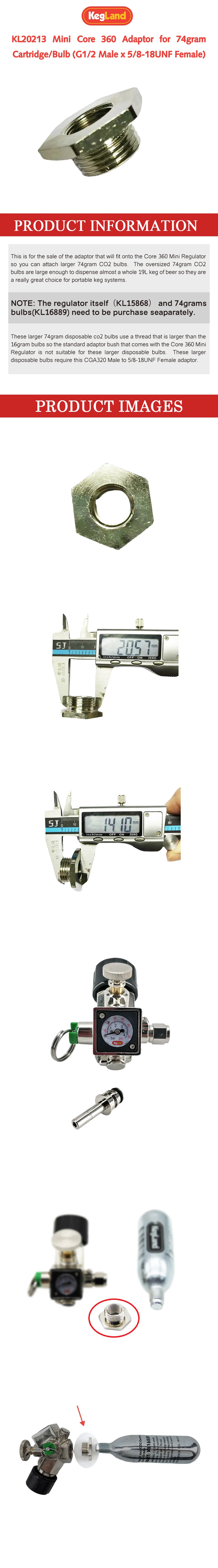 Kegland Мини ядро 360 адаптер для 74 г картриджлампа (G12 Male x 58-18UNF Female) домашнего пивоварения