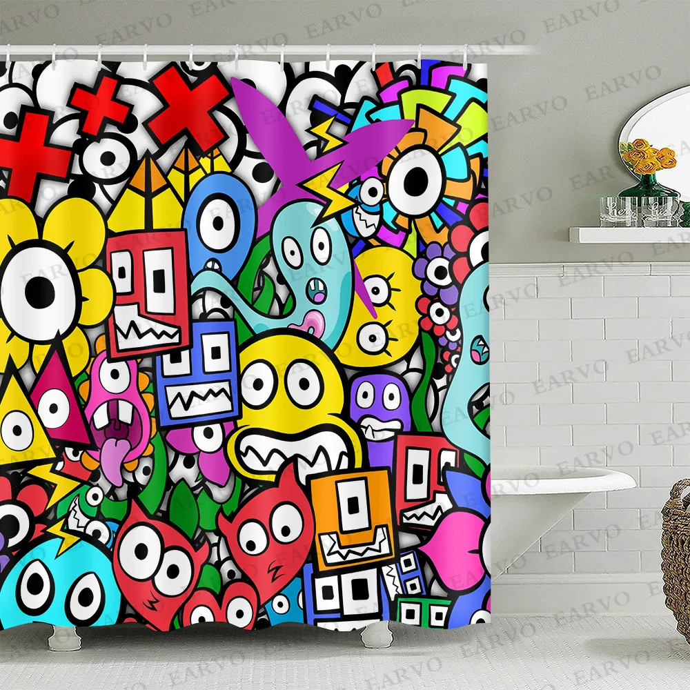 Занавеска для душа с мультяшным 3D-принтом, экраны для ванны с изоб...