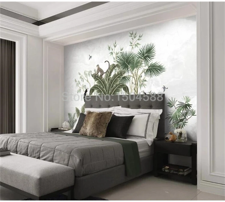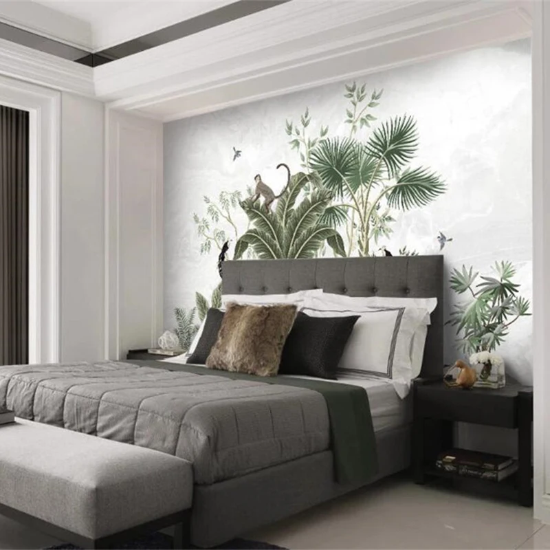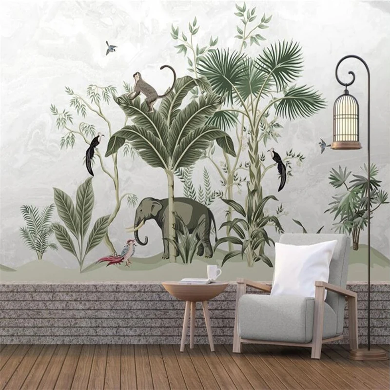 Настенные 3D обои ручной росписи, тропические листья, слон, птица, гостиная, задний фон для телевизора, дивана, декор для стен