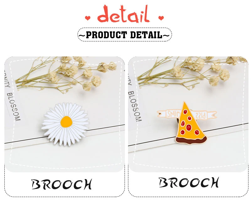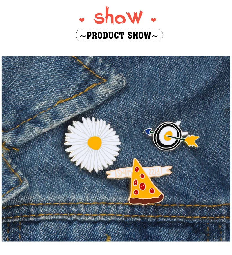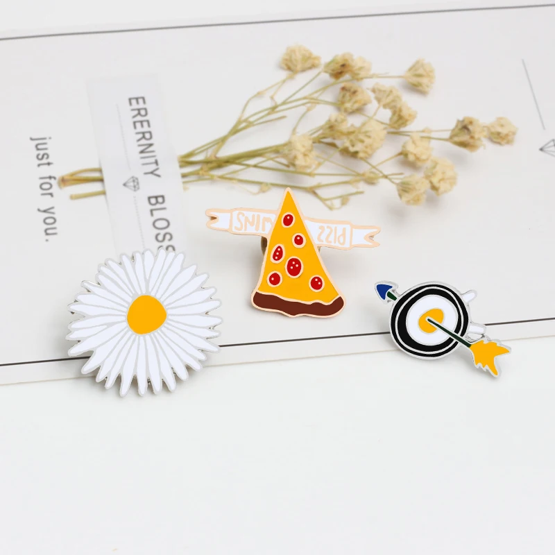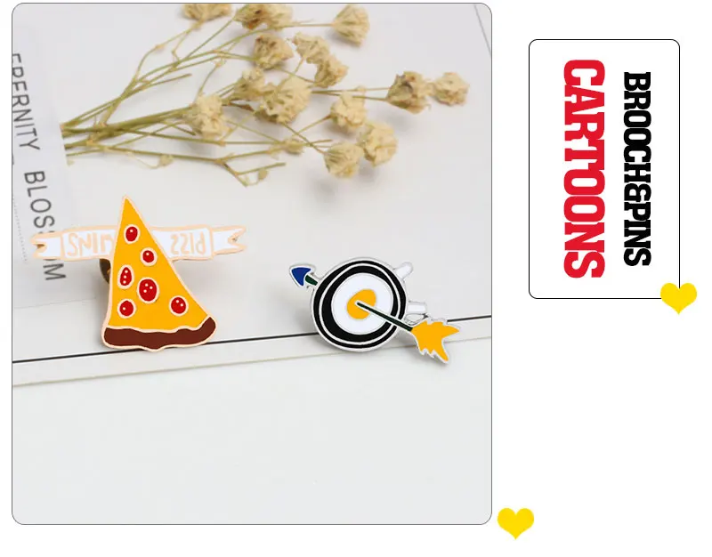 Металлическая эмалированная Булавка С мультяшным рисунком пицца Бант Цветок Модные броши ювелирные изделия для женщин мужчин рубашка джинсовая сумка Кнопка лацкан булавки аксессуары