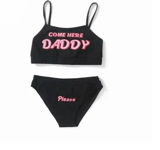 Комплект женского нижнего белья из 2 предметов, модный костюм с надписью, укороченный топ на бретелях-спагетти с принтом и трусики с завышенной талией, на лето