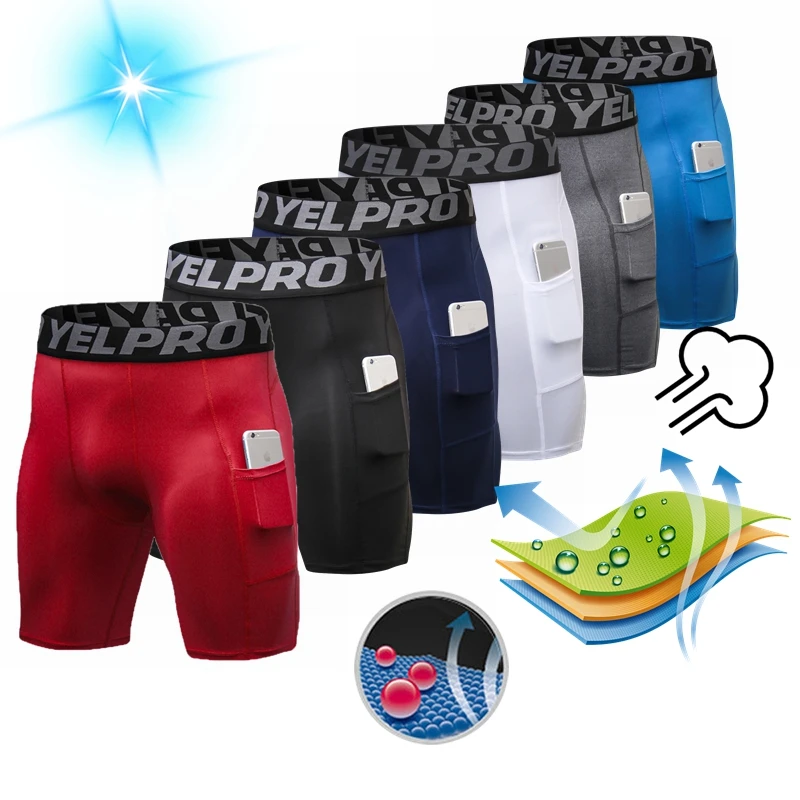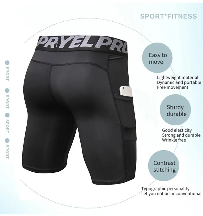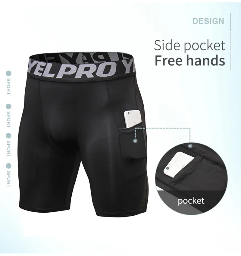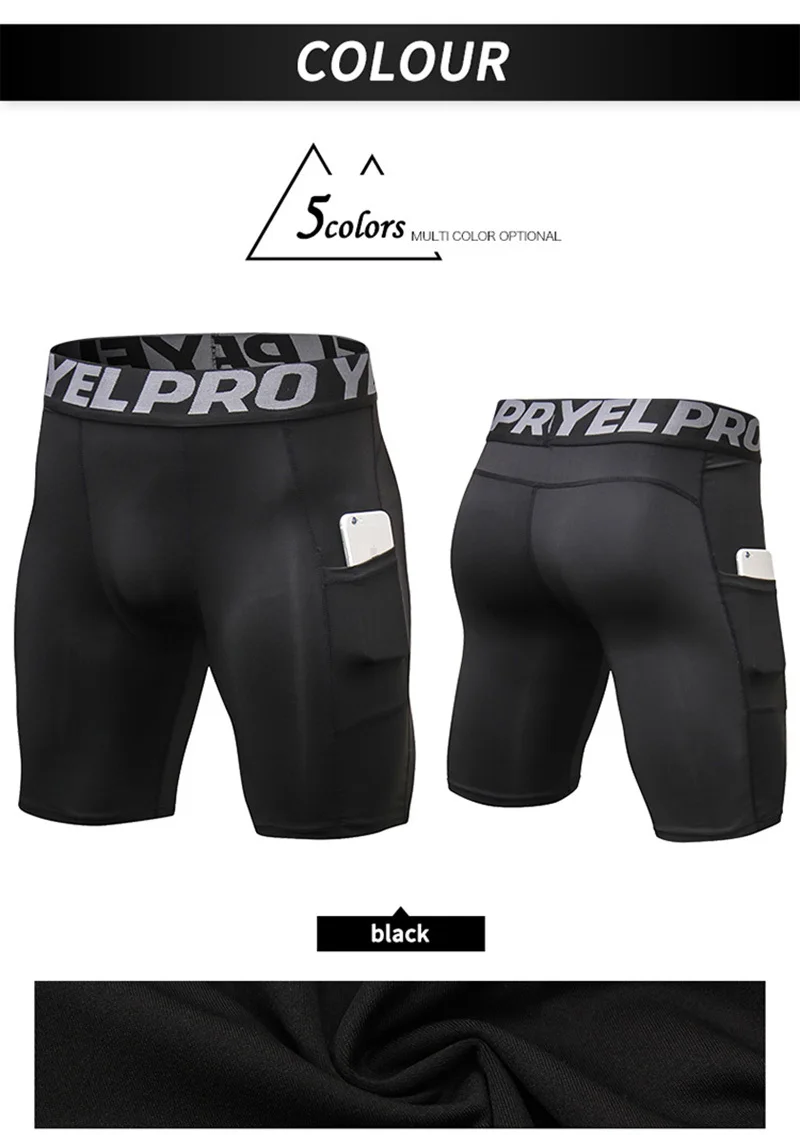 Мужские компрессионные облегающие шорты для бодибилдинга, мужские шорты для фитнеса с карманами, мужские быстросохнущие спортивные шорты для бега