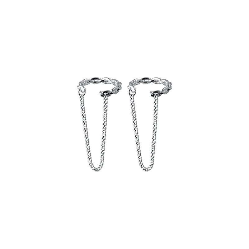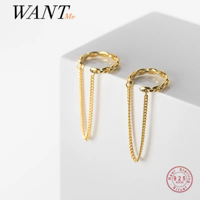 WANTME натуральная 925 стерлингового серебра Панк КУБИНСКИЙ звено цепи ушные серьги-клипсы для женщин Rock уха пирсинг для манжет ювелирные изделия аксессуары