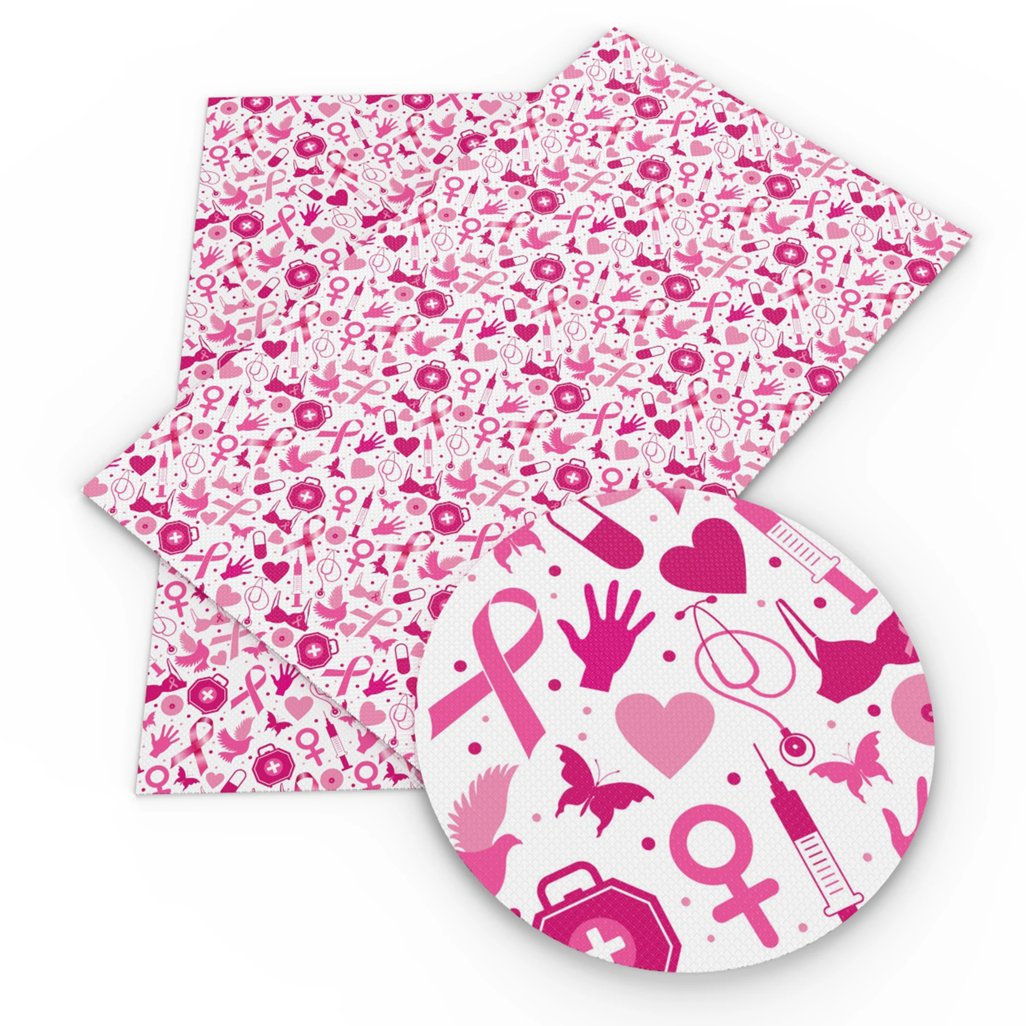 Розовые листы из искусственной кожи с рисунком рака груди, рулон синтетической кожи для самостоятельного изготовления сережек, бантов для волос