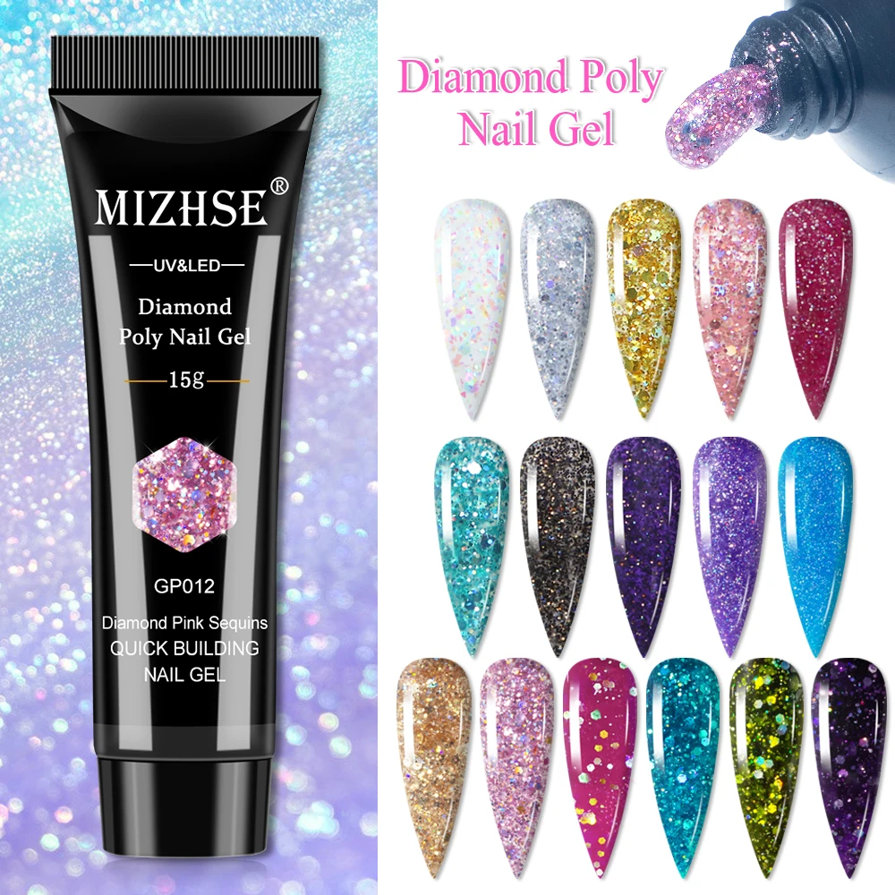 MIZHSE гель для наращивания 15 мл Блестящий поли гель для ногтей УФ-гель для наращивания Полупостоянный лак Гибридный гвоздь для маникюра