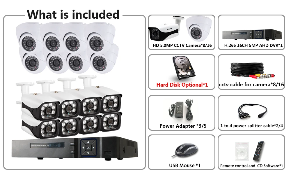8/16 x HD 5.0MP Крытый Открытый ИК День ночного видения атмосферостойкие камеры;