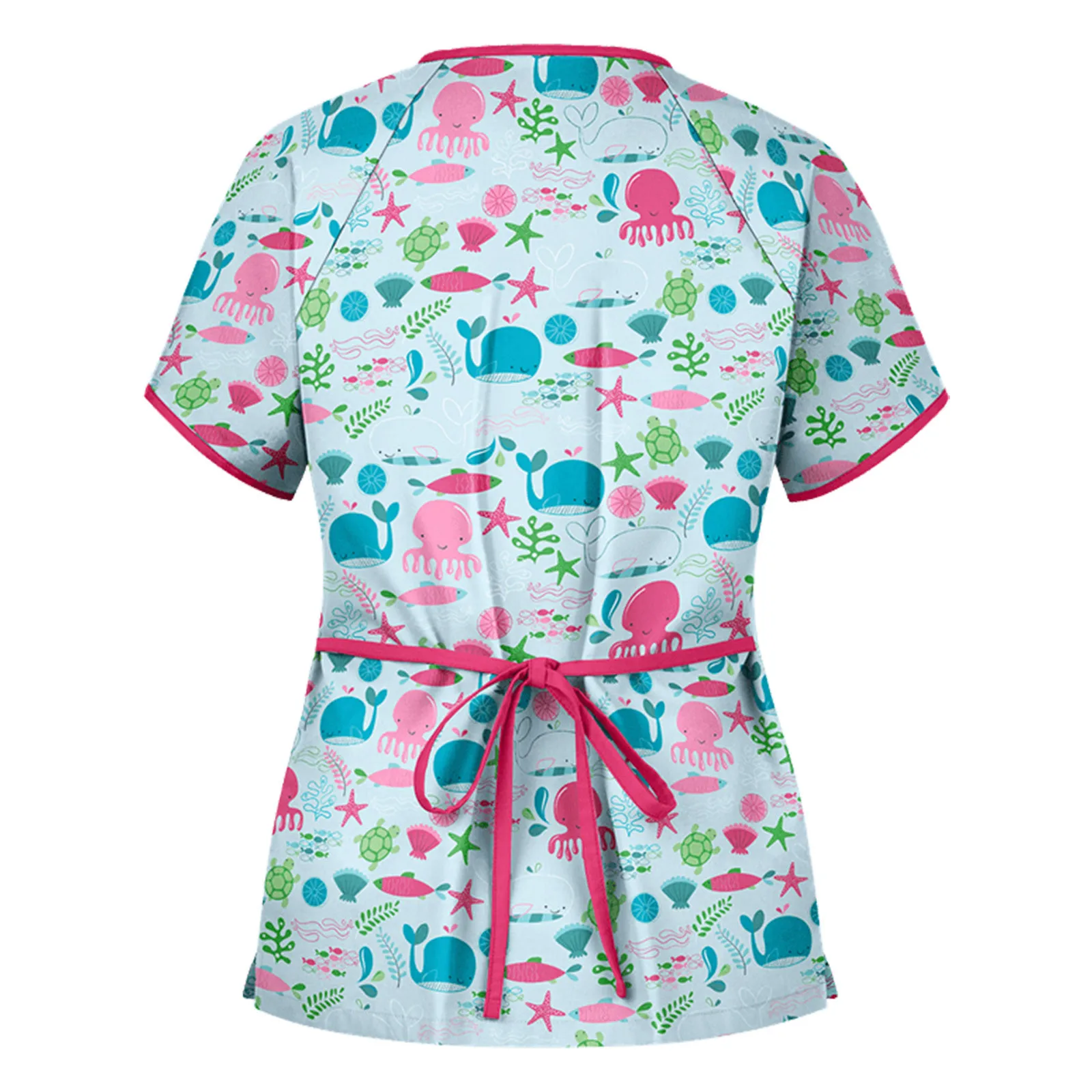 Женская футболка с коротким рукавом и v-образным вырезом рабочая Одежда, принт с героями мультфильмов Kawaii, принт с животными, блузка аксессуары для медсестер Медицинская Одежда