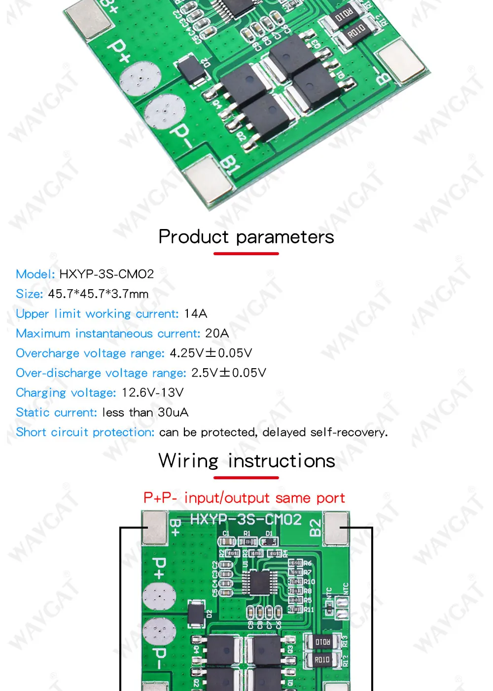 Защитная плата литиевого аккумулятора 3S 11,1 в 12 В 12,6 в, модуль BMS с защитой от перезарядки и перегрузки по току 14 а 18650, литий-ионный аккумулятор