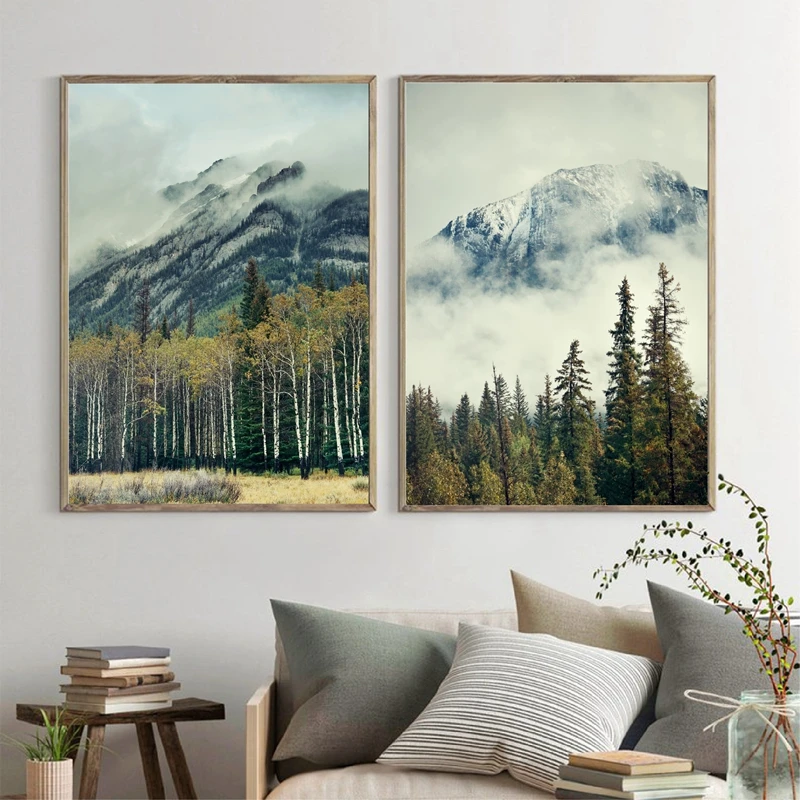 Пейзаж лес, холст, картина, облака и туман, зеленые горы, постер, украшение для дома, Настенная картина для гостиной, Декор, художественные принты