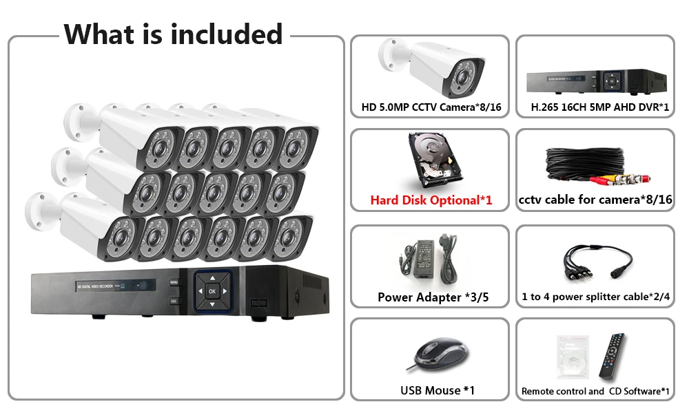 8/16 x HD 5.0MP Крытый Открытый ИК День ночного видения атмосферостойкие камеры;