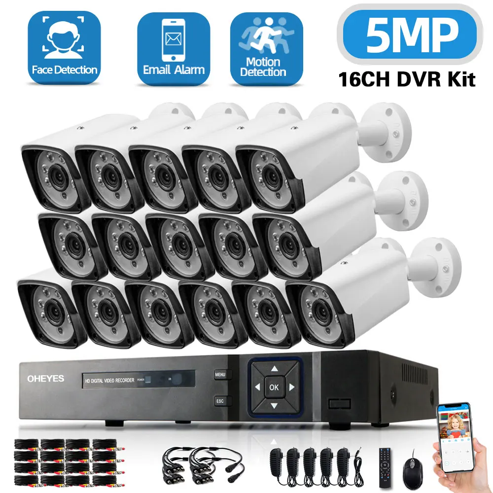 H.265 16CH 2MP 5MP AHD NVR CCTV система безопасности 16 шт. ИК наружная камера безопасности 5.0MP P2P комплект видеонаблюдения