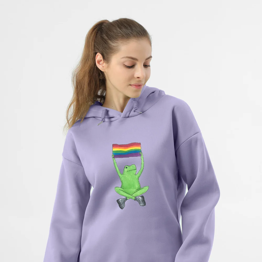 Женская толстовка с капюшоном Harajuku, креативная Радужная Толстовка большого размера, с рисунком лягушки