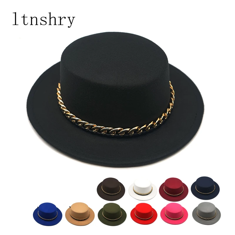 Шляпа Круглая для мужчин и женщин, Панама из искусственной шерсти, в стиле джаз, в европейском и американском стиле, шляпы с плоским верхом, Осень-зима 2021