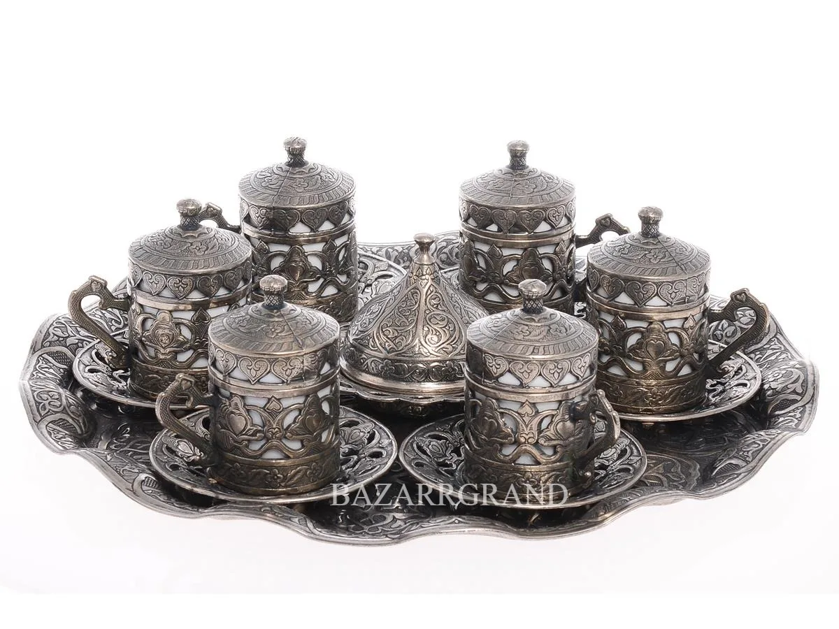 Роскошный набор кофейников из турецкого фарфора, 6 тарелок, набор кофейных чашек с просеиванием, цвета: белый, желтый, олово, античная медь, набор стаканчиков для желтых чашек, греческий кофе, подарочный кофейный набор demitasse для 6 человек. Состоит из 25 штук. .... В лотке, наш набор входит в комплект. Мы желаем Вам счастливых и здоровых дней предупреждения