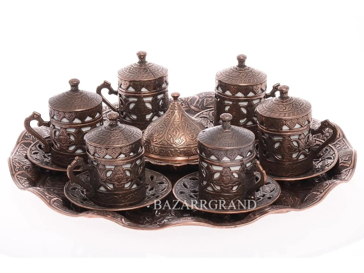 Набор медных чашка для кофе по-турецки для эспрессо с талисманом, т...