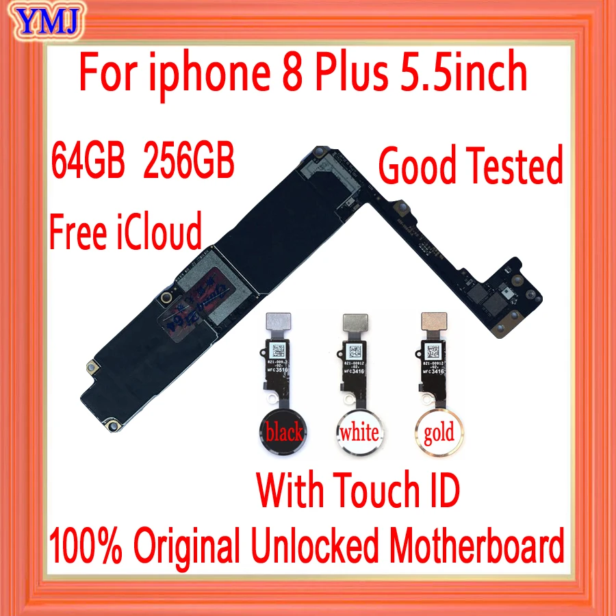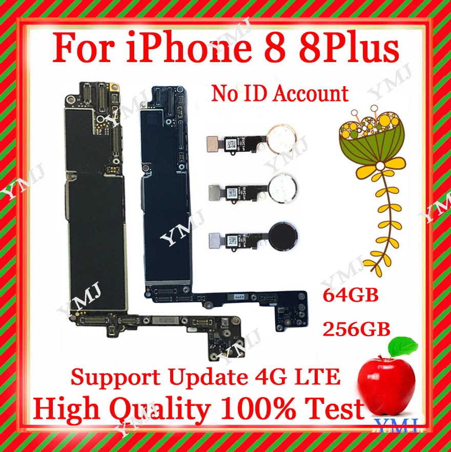 Материнская плата для iphone 8 8 Plus, 64 ГБ, 256 ГБ, сбез Touch ID, полные чипы, 100% тест, без ID-учетной записи, логическая плата, поддержка обновления 4G LTE