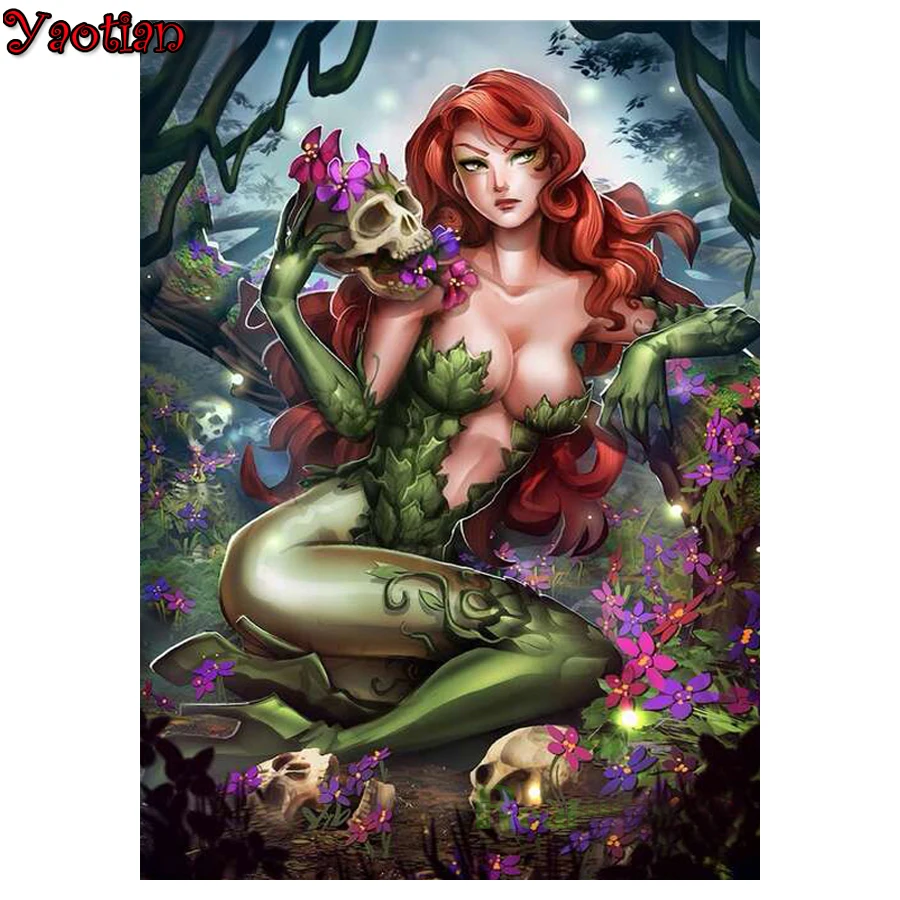 5D алмазная живопись сделай сам, полноразмернаякруглая Алмазная Вышивка крестиком, мультяшная пикантная женщина, Череп, алмазная вышивка, икона, подарок на Хэллоуин