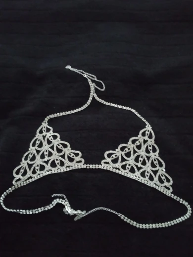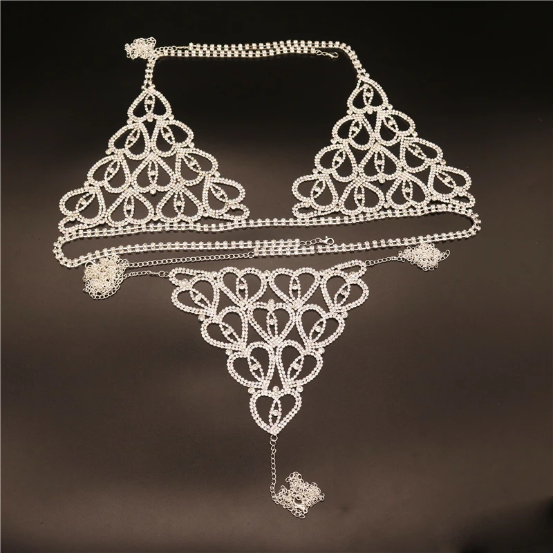 Комплект женского нижнего белья, с цепочкой и кристаллами, с сердцем
