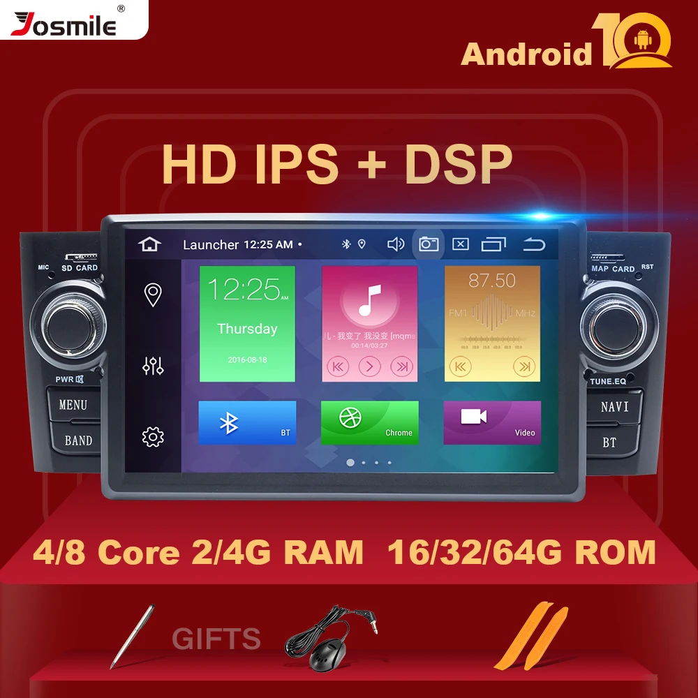 Автомагнитола 1DIN на Android 10, 4 Гб, IPS, DSP, мультимедийный проигрыватель для Fiat Punto Grande Linea 2007-2012, GPS-навигация для Carplay