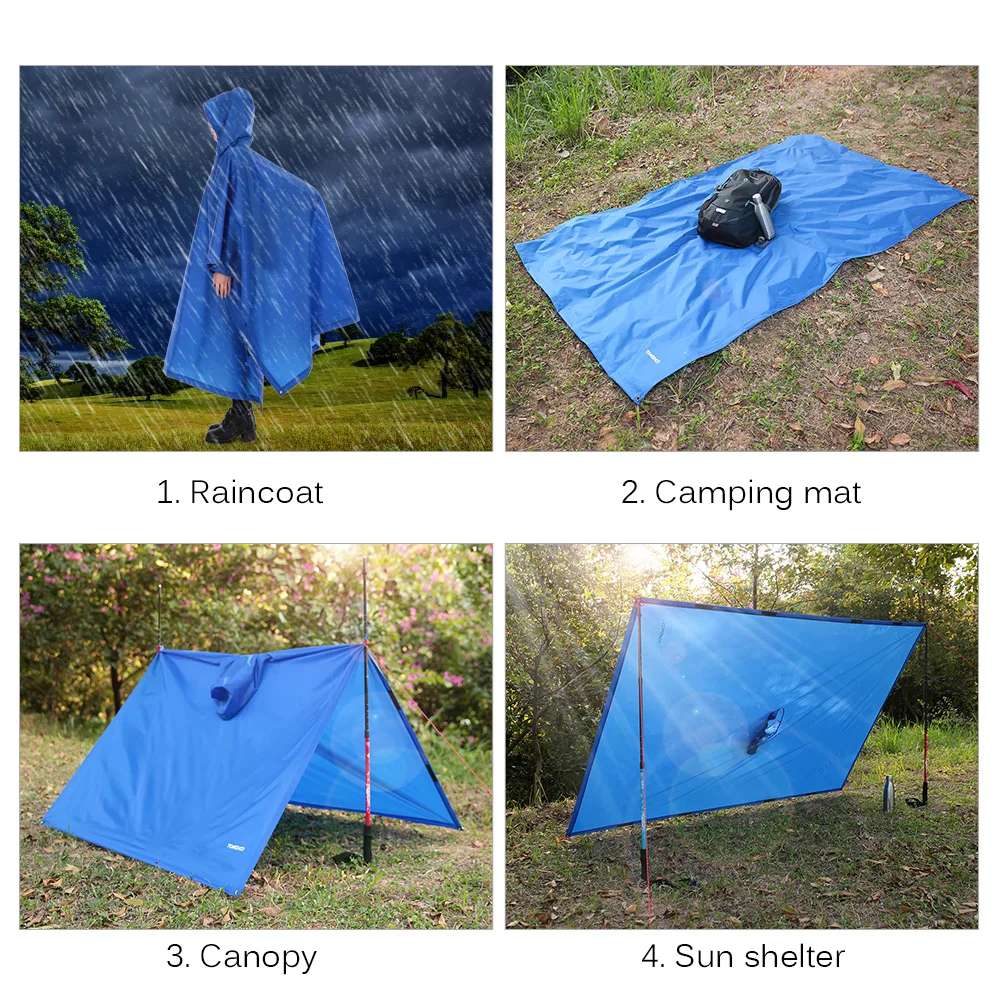 Многофункциональный легкий дождевик с капюшоном, походный велосипедный дождевик, пончо, дождевик, уличный походный тент, коврик 2021