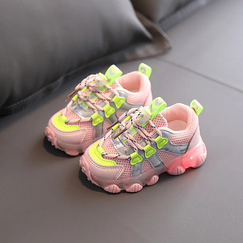 Детские светящиеся кроссовки, сетчатые дышащие, обувь с светильник ...