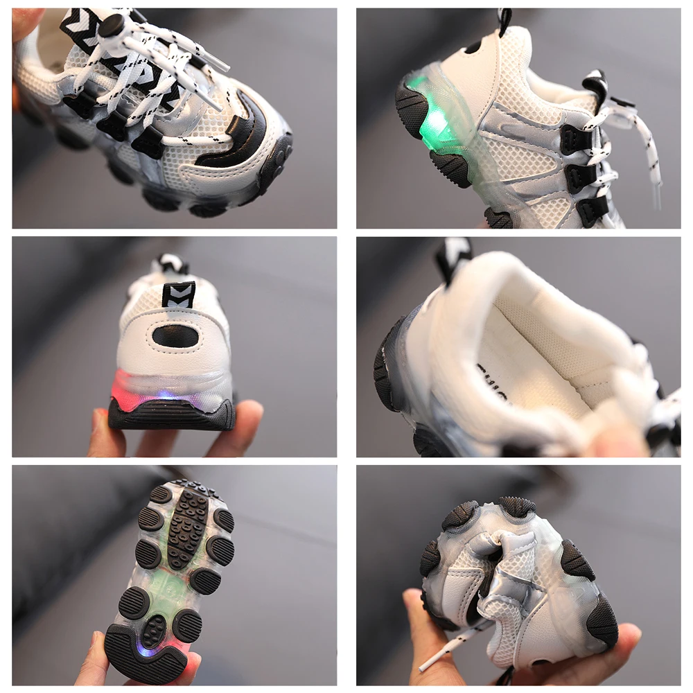 Светящиеся кроссовки для мальчиков и девочек, сетчатые дышащие туфл...