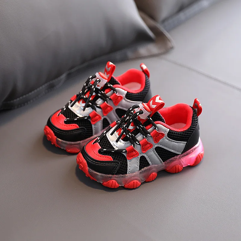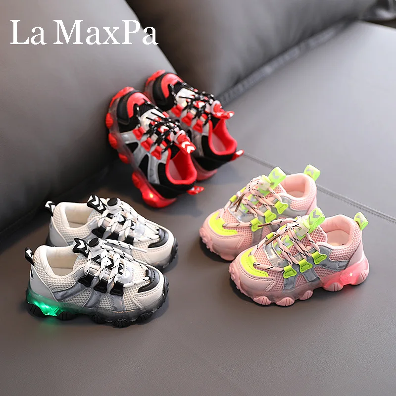 Светящиеся кроссовки для маленьких мальчиков, Нескользящие, со светодиодной подсветкой, дышащие, повседневная обувь для девочек, размеры 21-30