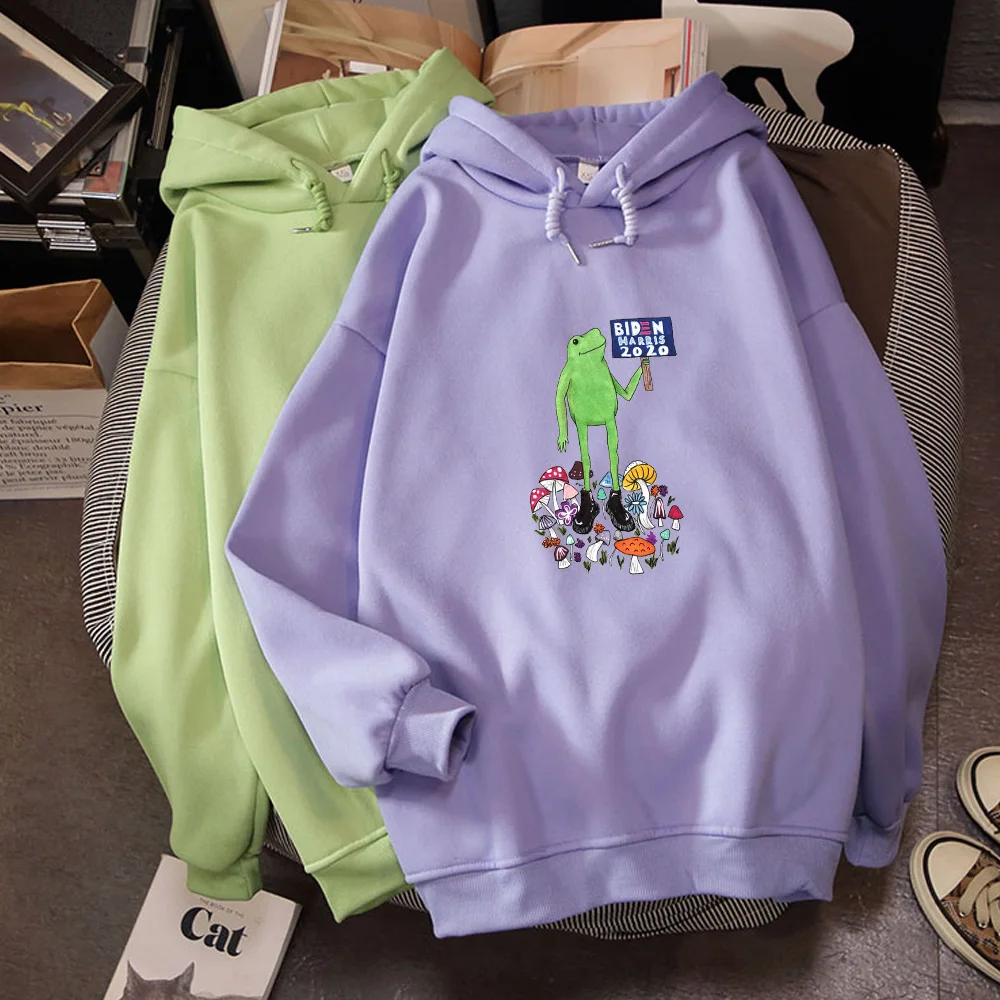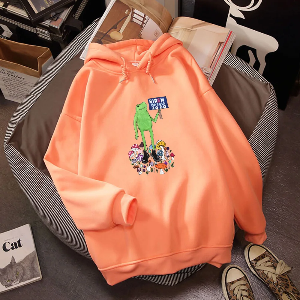 Зима письмо с рисунком лягушки Свободный свитшот для женщин толстовки теплый пуловер с капюшоном розового цвета женские корейские Стиль в уличном стиле