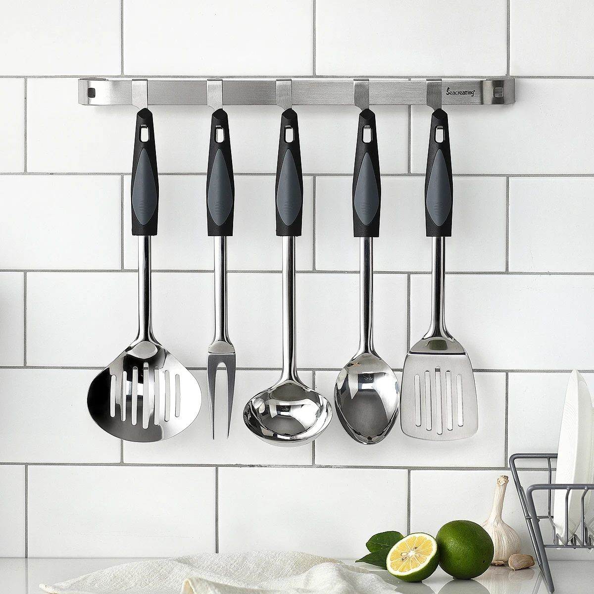 Настенная подвесная стойка для кухонных принадлежностей seопайтинг 46 см из кованого нержавеющей стали с 5 крючками