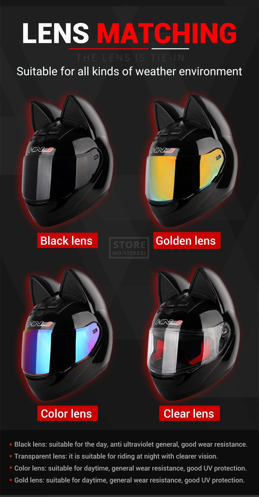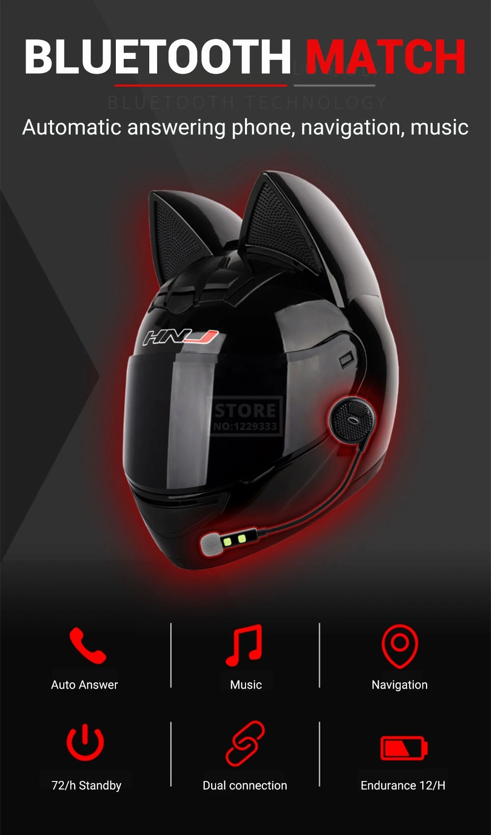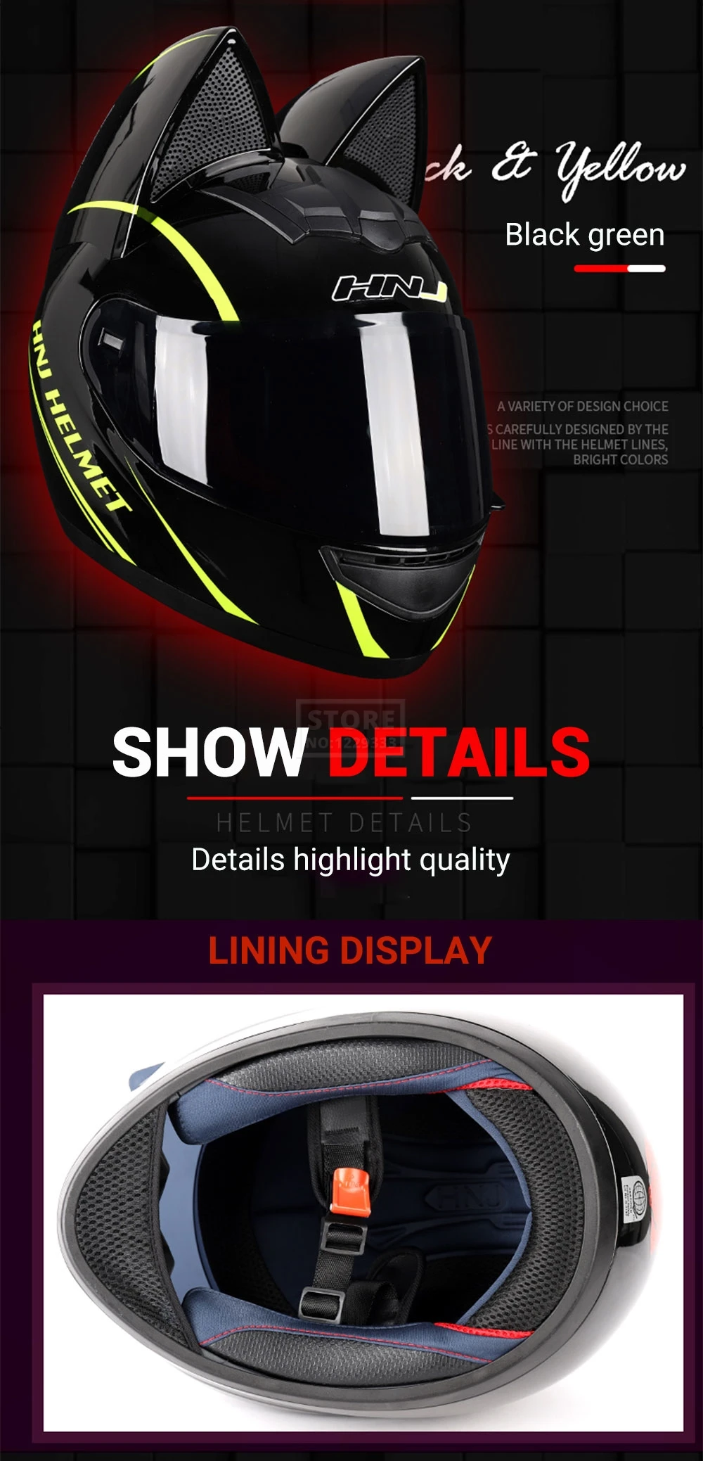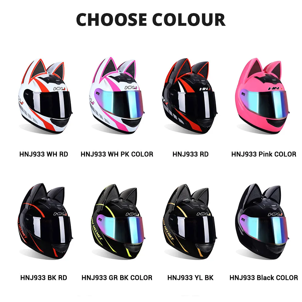 Мотоциклетный шлем, закрывающий лицо, дышащий шлем для мотокросса со съемными кошачьими ушками, обтекаемый шлем для женщин и мужчин