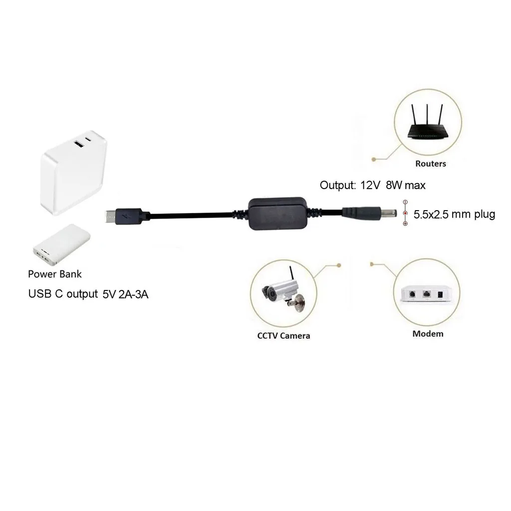 Конвейер USB C с повышением напряжения, 5 В до 12 В, 8 Вт, 5,5x2,5 мм, кабель питания для маршрутизатора Wi-Fi, Светодиодная лента светильник многое другое