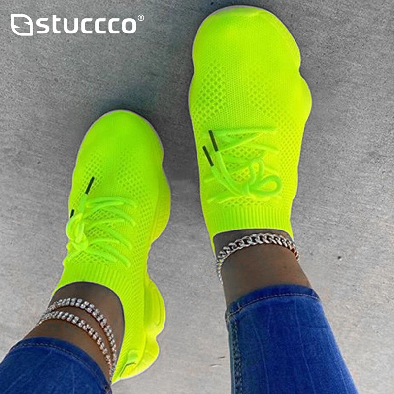 Кроссовки женские на плоской подошве, дышащие сетчатые, флуоресцент...