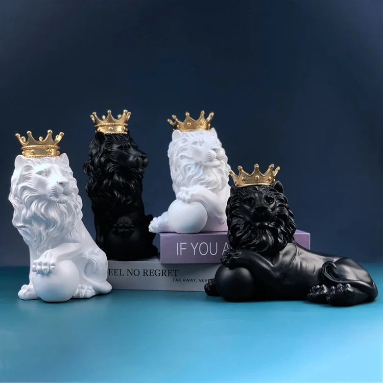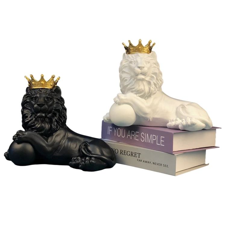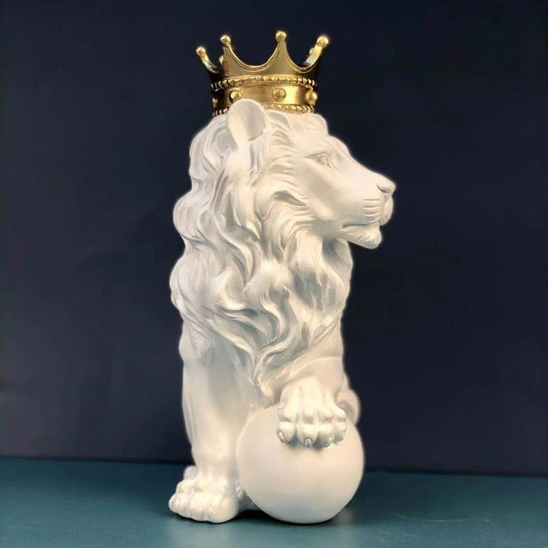 Статуя со львом Lucky Crown, статуя из смолы, скульптура для дома, офиса, бара, мужские украшения со львом, животные для гостиной, ТВ, ремесла, абстрактное искусство, Декор, подарок