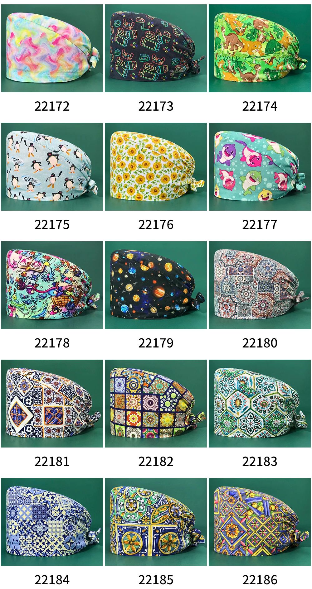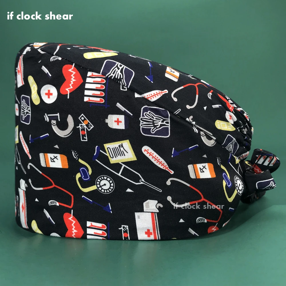 Эластичная Регулируемая женская шапка-обхват с мультяшным принтом, шапка для хирургии с повязкой, мужская шапка для медсестер, шапка для волос, аксессуары для униформы, шапка-скрабы