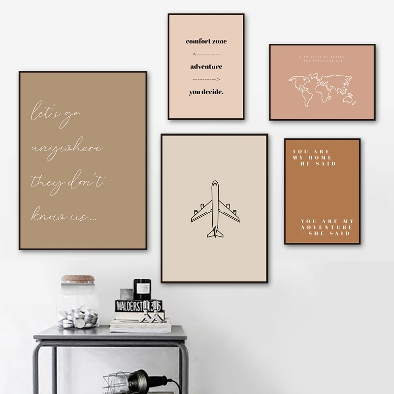 Постер с цитатами о путешествиях, Карта мира, линия, рисование, холст, печать, галерея, гостиная, домашний декор, настенные картины, современная картина в стиле бохо