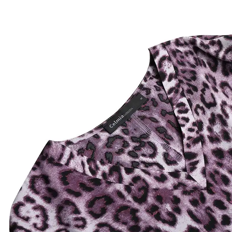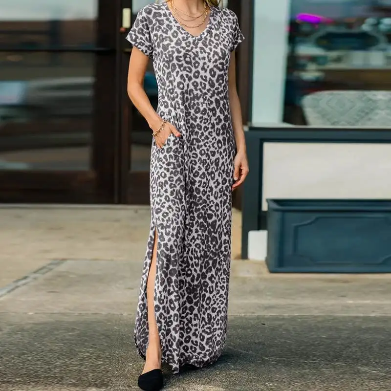 Летнее модное платье с леопардовым принтом Celmia, женское Повседневное платье макси с коротким рукавом, V-образным вырезом и карманами, элегантный сарафан 2021 с разрезом на подоле