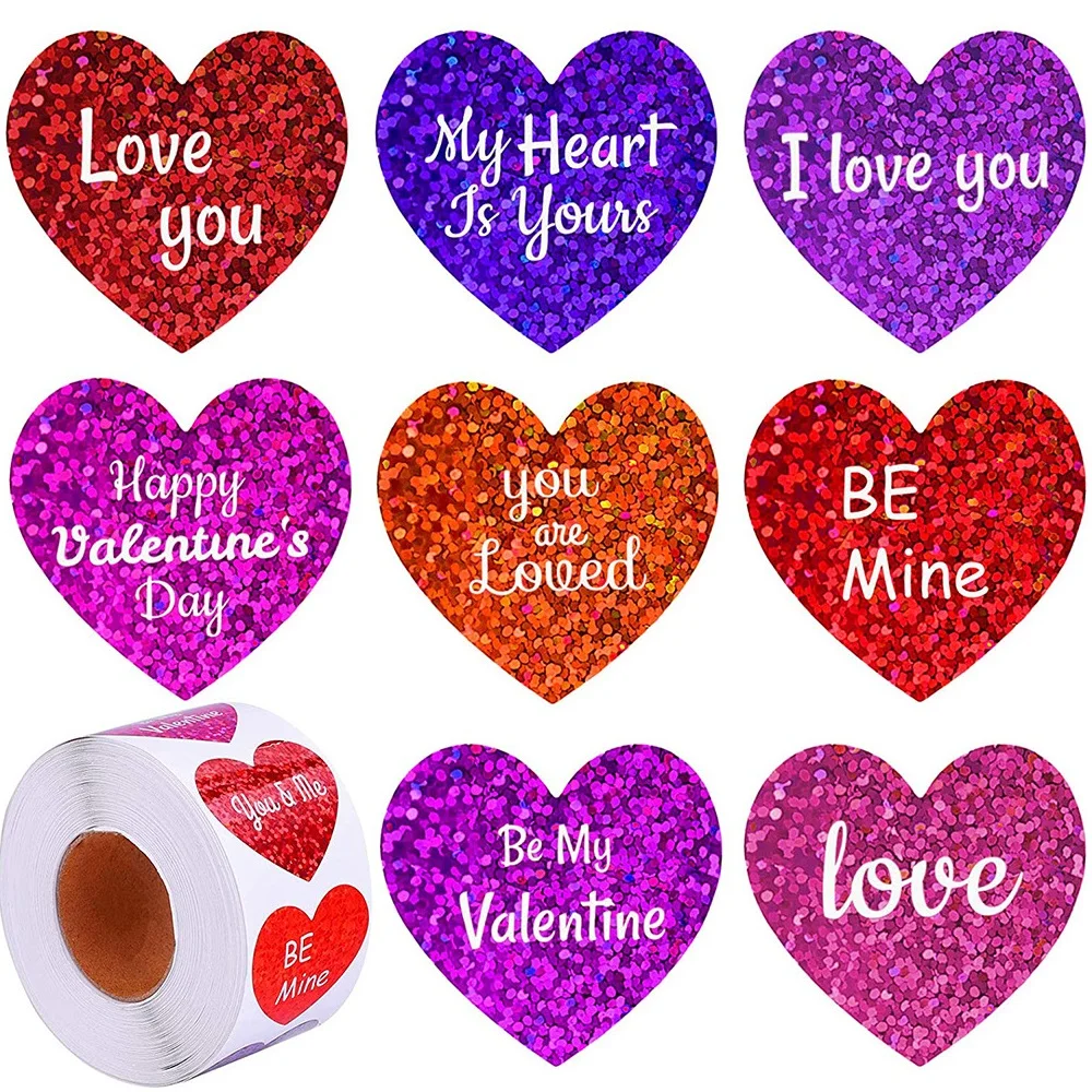 Этикетки в форме сердца 1 дюйм, наклейки для упаковки подарков на день Святого Валентина, конфет, драже, сумок, упаковки на свадьбу